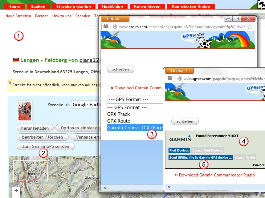 (Voraussetzung: Du hast das Garmin Communicator Plugin im Browser installiert. Wenn du der unten stehenden Anleitung folgst, wirst du gegebenenfalls zur Installation weitergeleitet.)