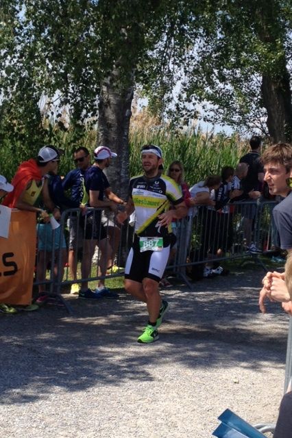 Schwimmen im Obersee des Zürichsee - Wellenstart mit ca. 400 weiteren Startern aus meiner AK. Bin, wie geplant, nach 40min aus dem Wasser raus. Nach ca. der Hälfte hat mir allerdings ein kreuz-und-quer-schwimmender Brustschwimmer einen Pferdekuss auf die Wade verpasst, das ich unter Wasser laut AUA gerufen und geflucht wie ein Kesselflicker habe. Der Pferdekuss hat mir beim Schwimmen und beim Radeln keine Probleme bereitet, nur beim Laufen wurde es doch sehr unrund. Nicht zu reden von heute (einen Tag nach dem WK): konnte auf der 400km langen Heimfahrt nicht richtig die Kupplung durchtreten.