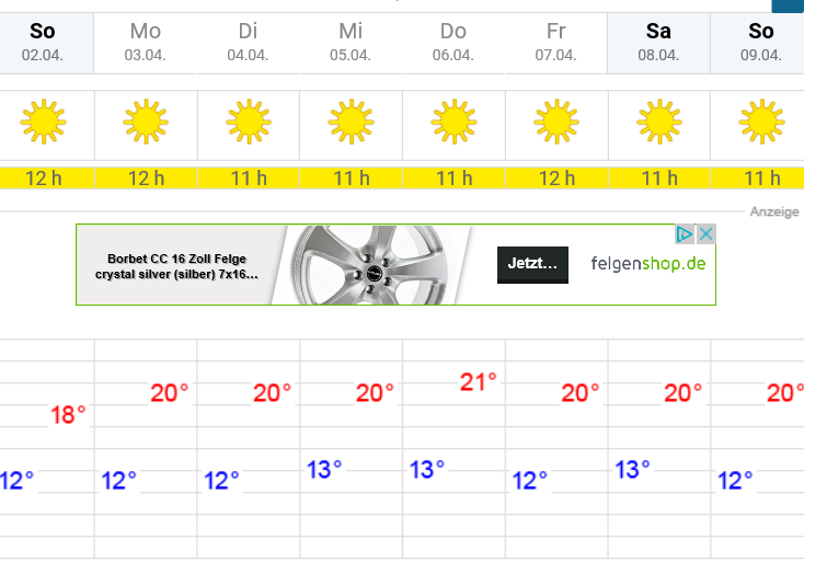 Noch besser sind die Wetteraussichten für Malle ab der Woche wo ich dort bin.