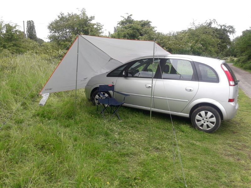 generell würde ich den Schutz auch immer über den Türen oder hintenraus bauen, weil du dann trocken aus dem Auto kommst,oder sehe ich das falsch ...Mach ich am Samstag, wenn ich nen guten Platz zum pennen in Gasseldorf gefunden habe. Aber sagen wir mal so, starken Regen mit Wind, da wird das Zeltdach nix bringen, weil ja ein Teil des Zeltdachs über das Auto gelegt und auf der anderen Seite abgespannt werden muss. Besonders viel Platz bleibt da nicht. Ich überlege daher nun, mir eine Dachreling zuzulegen, die Vorrichtung dafür ist schon serienmäßig beim Meriva eingebaut. Dann könnte ich die Zeltbahn mit Karanbinerhaken an der Reling befestigen, das würde den Platz erheblich vergrößern.