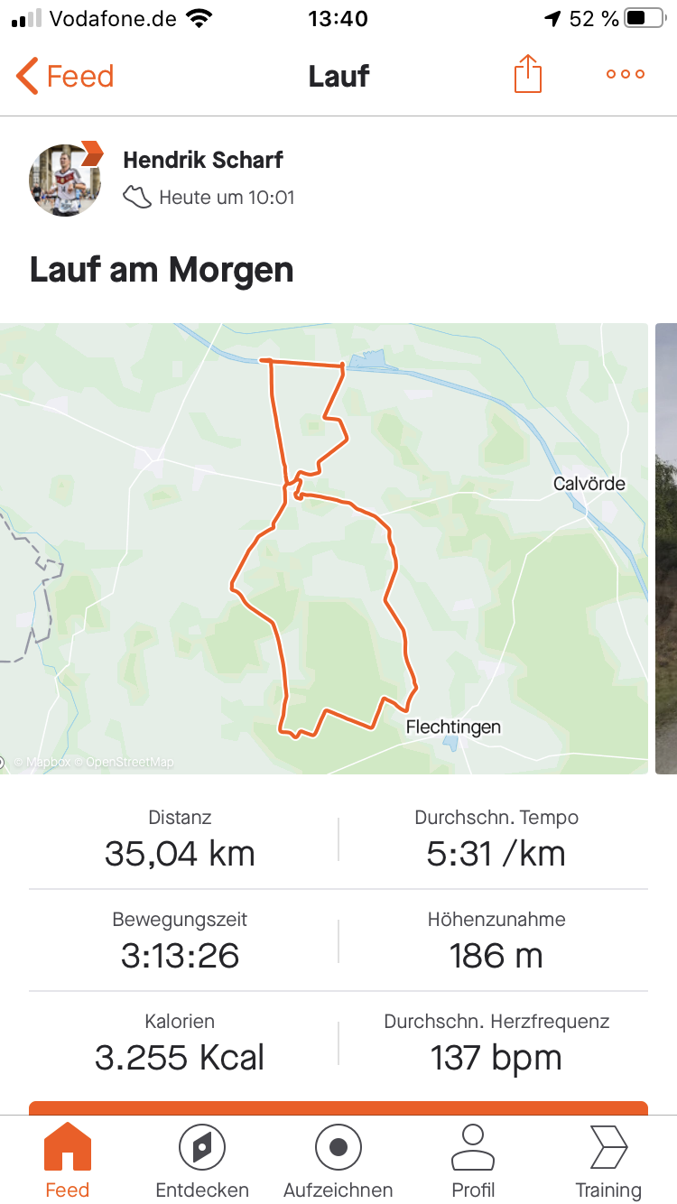 Geplant hatte ich den langen Lauf eigentlich für morgen habe es mir aber dann heute während des Laufens anders überlegt und dachte mir was ich hab das hab ich.