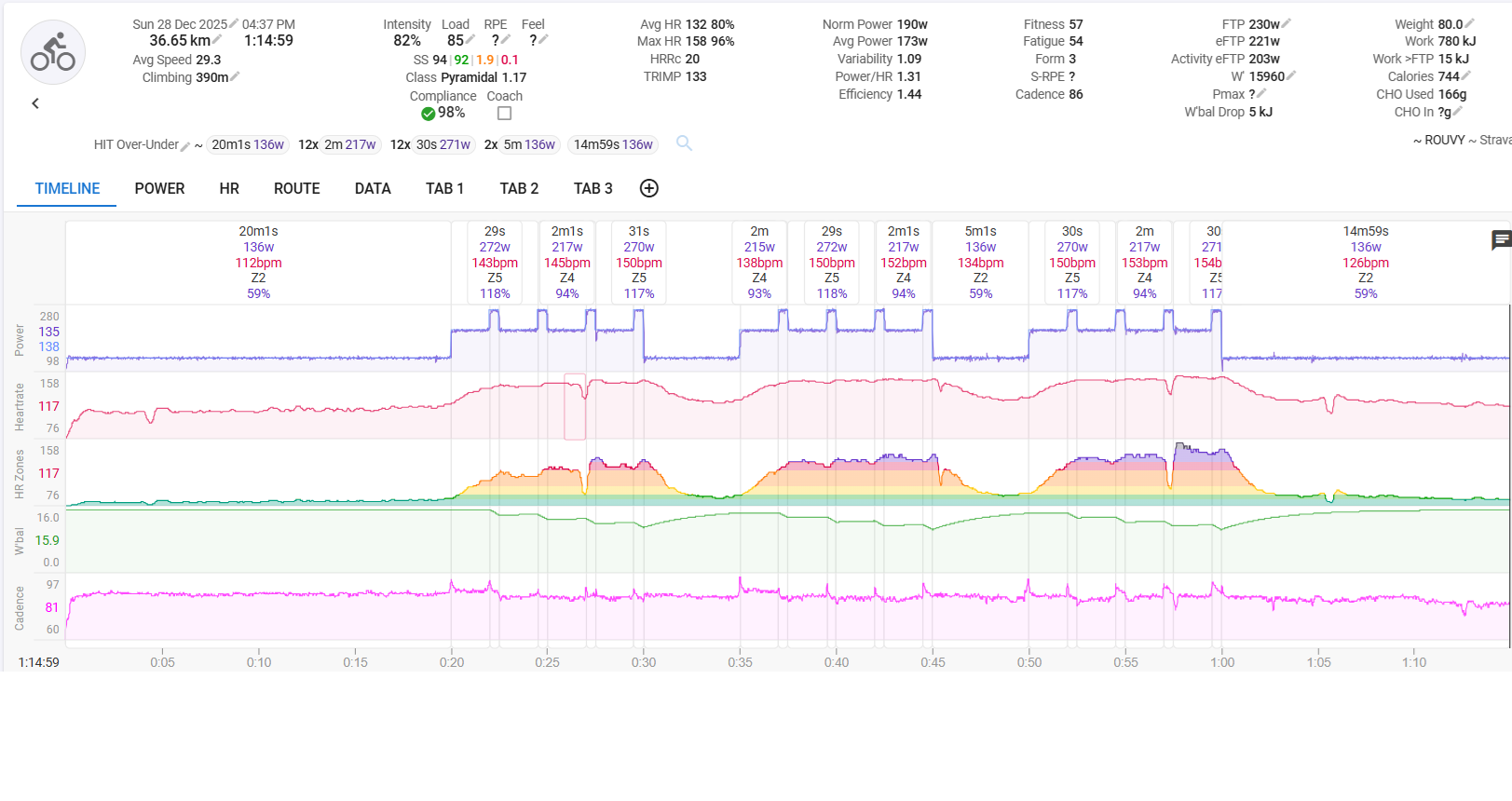 Ja gerade auf der Rolle. Mit den neuen Werten aus dem Test war es schon sehr hart und musste mich richtig quälen am Ende, da die "Erholung" von den 2min keine wirkliche Erholung mehr war....Ist schon jemand die Einheit heute gefahren. Ich drück mich gerade noch vor. Das sieht übel aus![]()
