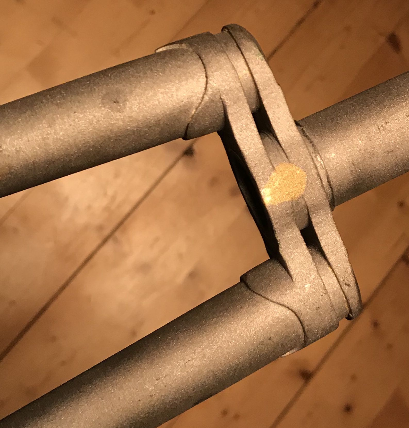 Ein Problem welches ich zuvor nicht gesehen habe war, dass das Rohr an der Sattelklemmung gequetsch und sogar leicht eingerissen war.