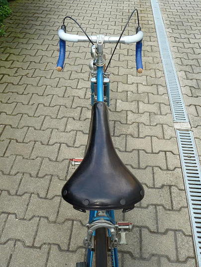 hier ein bild von meinem stadtrad, qualität ist leider nicht so doll. laut rahmennummer baujahr 1978. sobald ich einen passenden vorbau gefunden habe wird ein cinelli criterium montiert. den elsner vorbau aus der gabel zu kriegen war ein ganz schönes unterfangen, nach massen wd40 hats irgendwann mit brachialer gewalt geklappt. ich habe bis jetzt noch kein anderes rad mit diesen decals am sitzrohr gefunden, die anderen bahnräder haben meist andere. weiß jemand evt was darüber?