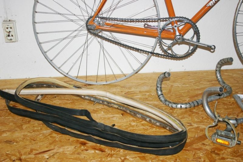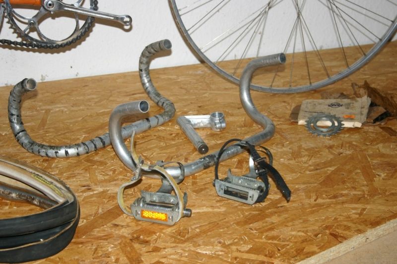Schlauchreifen, Hakenpedale... eigentlich alles zusammen, um ihn wieder korrekt aufzubauen.