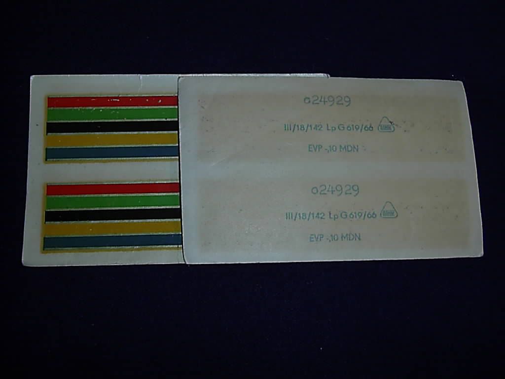 Hi Leute, nochmal zu den Weltmeisterringen, habe heute nochmal welche aus der DDR-Zeit bekommen diese Farbreienfolge stimmte, komisch gab scheinbar Unterschiede dabei.Aber auch bei diesen Ringen war die Qualität nicht so gut, sind einfach schon zu alt.(10 Pfennig zu heute 5 Euro ist schon witzig)