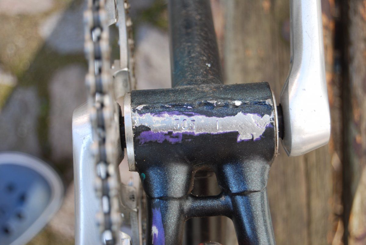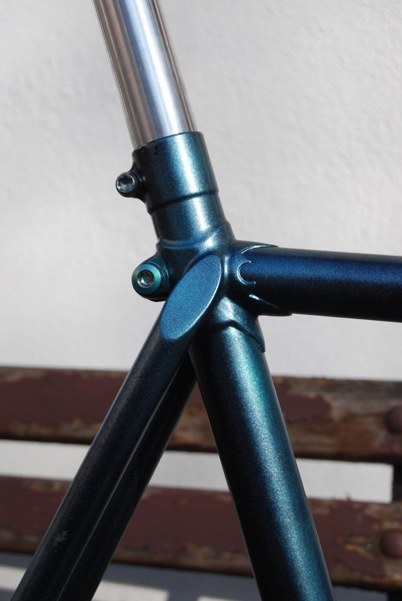 Unten übrigens mal Sattelklemmung und Tretlagerbereich zu dem vorhin gezeigten Ausfallende.