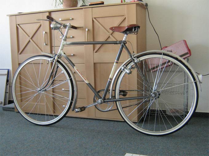 Das Rad ist Baujahr 1963, also dem Jahr, in dem Klaus Ampler die Friedensfahrt gewann, mit 2568 km übrigens die längste Friedensfahrt der Geschichte, nebenbei bemerkt!
