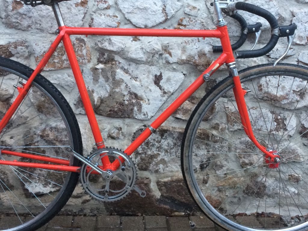 Ich habe einen nett umgebruzelten Diamant Rahmen und dazu eine polnisch/tschechoslovakische? Kopie einer Campagnolo Record Kurbel, sowie ein Cockpit, das auch aus ähnlicher Quelle wie die Kurbel stammen könnte... der Vorbau scheint mir auch selbst gebaut/umgearbeitet. Authentische Bremsanlage ist auch dabei.