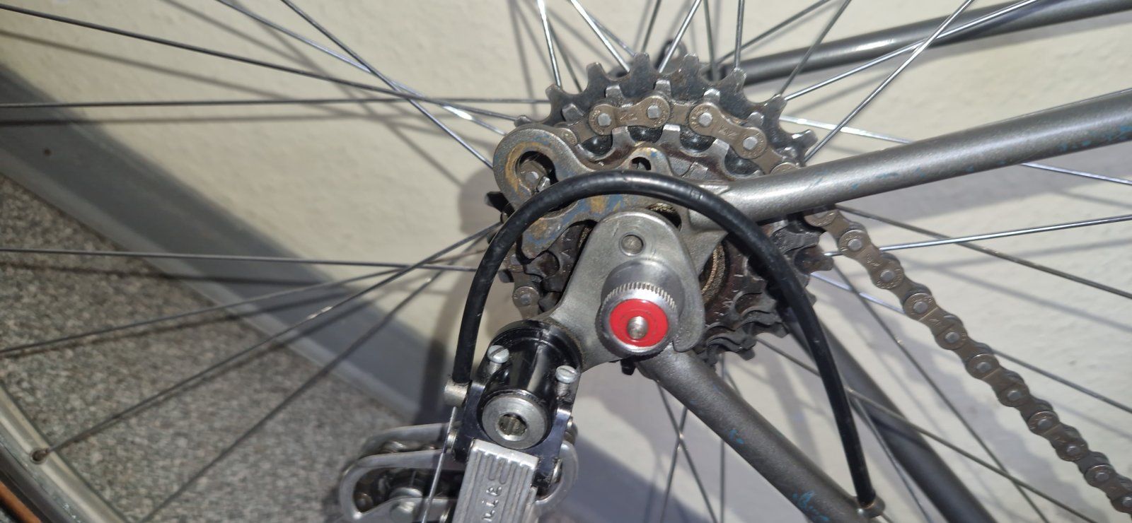 Es hat noch die alten Ausfallenden Hinten. Vorn eine gebohrteBahnradgabel. Um den Radstand hinten anzupassen bin ich mit der Achse nicht an den üblichen Platz, sondern in die etwas dreieckigen Löcher etwas weiter vorn. Hat mein Problem super gelöst und ich brauch kein Elsner oder Niemann Umbau da mir der Lack absolut nicht gefällt in den meisten Fällen. Lange Rede kurzer Sinn. Ich bekomme das schaltauge vom Favoriten nicht mehr befestigt.. und jedes mal wenn ich das Rad ausbau, baumelt meine Schaltung lose am Rahmen. Wenn jemand eine schöne Lösung hat wäre ich sehr dankbar, ist mein Alltagsrad. Anhang anzeigen 1456673