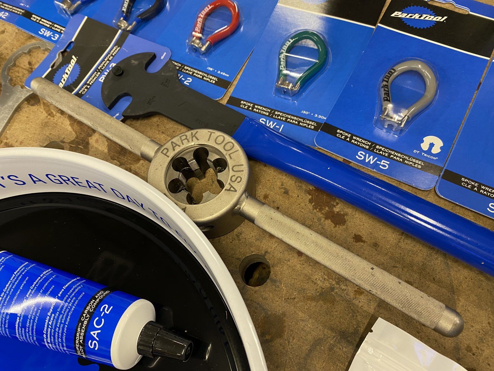 Viel schöner Schrauben jetzt - mit überteuertem Werkzeug :-D Die Park Tool Wand kann beginnen ...