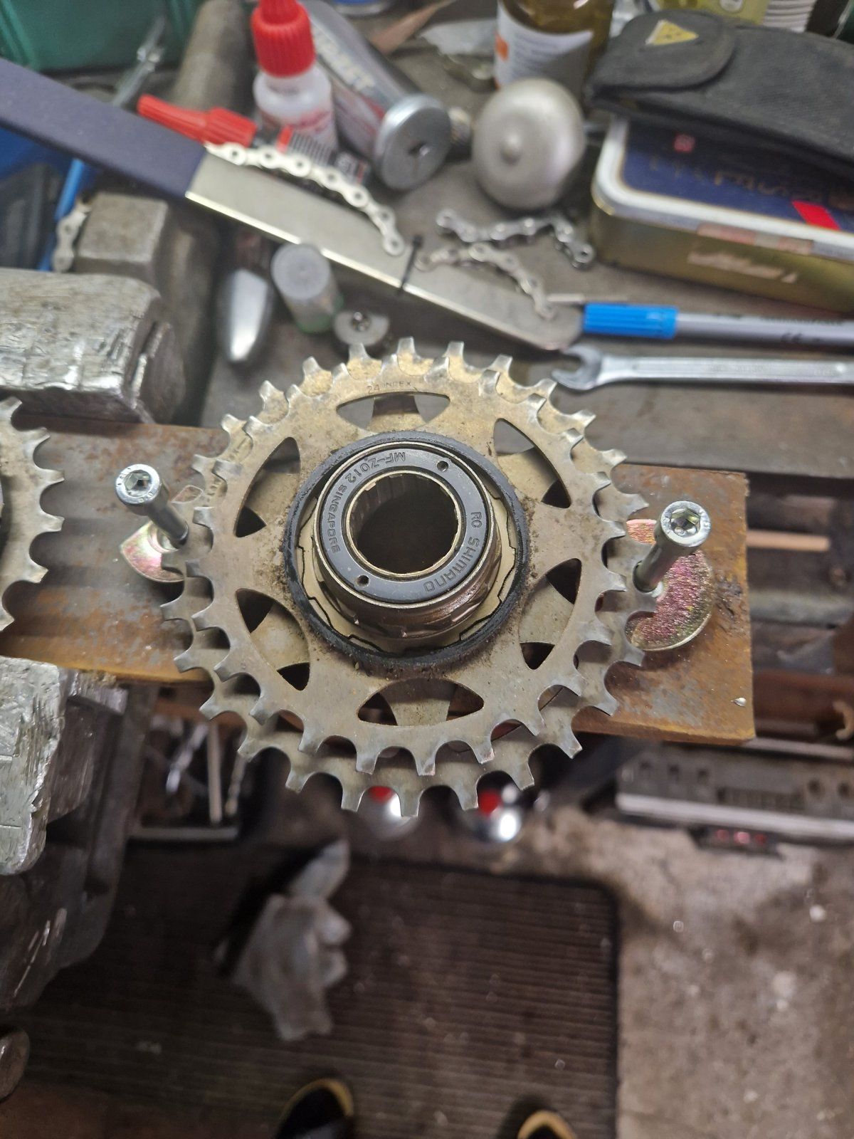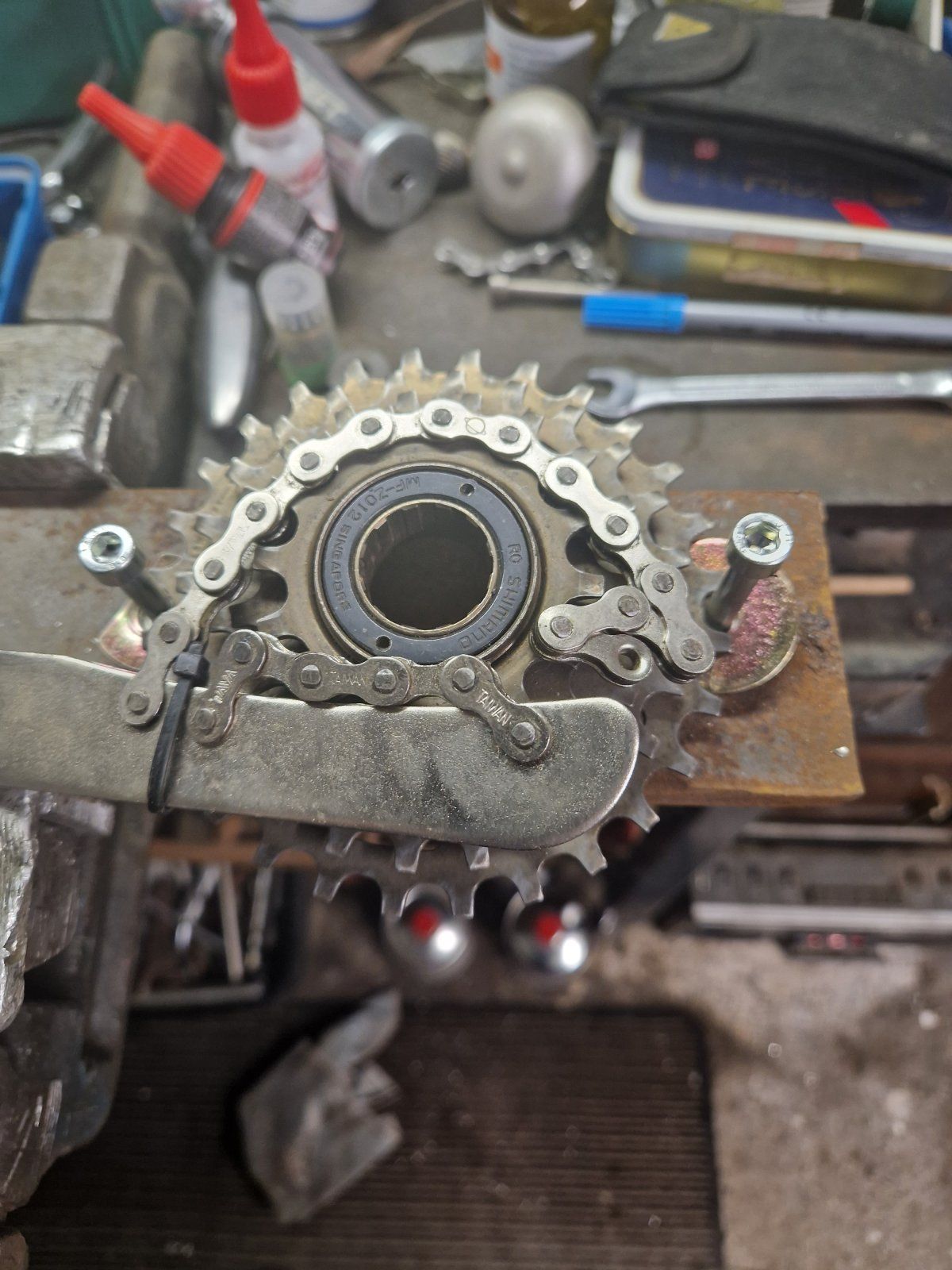 Erinnere dich an den var, der hat einen zweiten Bolzen auf jeder Seite. Aus gutem Grund, ich habe mit einem Kranzhalter deiner Bauart schon mal einen Zahn des größten Ritzels gezogen.