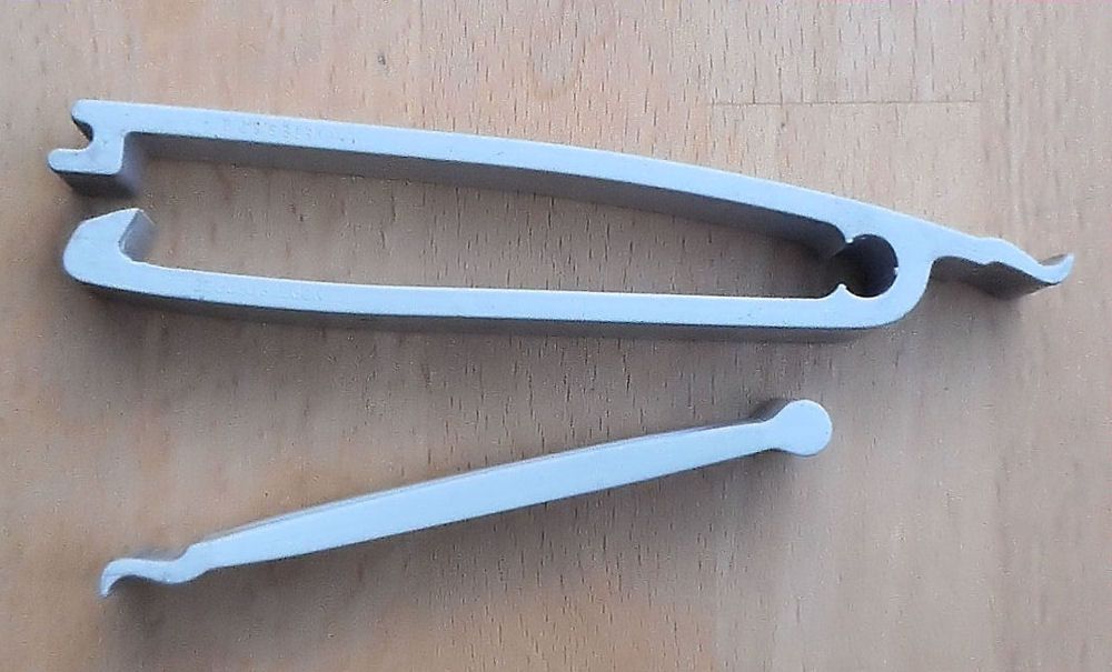 Den mittleren hab ich noch, den anderen hab ich irgendwann einfach weggeworfen, da ich den Sinn davon nicht erkannt habe. Bin mir auch jetzt noch nicht sicher, wofür man die oben beschriebenen Werkzeuge brauchen können, solange man zwei gesunde Hände hat. Selbst Tubeless-Reifen montiert man doch mit den Händen, max. mit einem normalen Reifenheber. Das mit dem montierten Reifen ans Horn bekommen hab ich auch nicht verstanden, was meint ihr?Neben dem Haken zur Montage des Reifens sind da ja auch noch zwei normale Reifenheber dabei, den zweiten kann man "einparken".