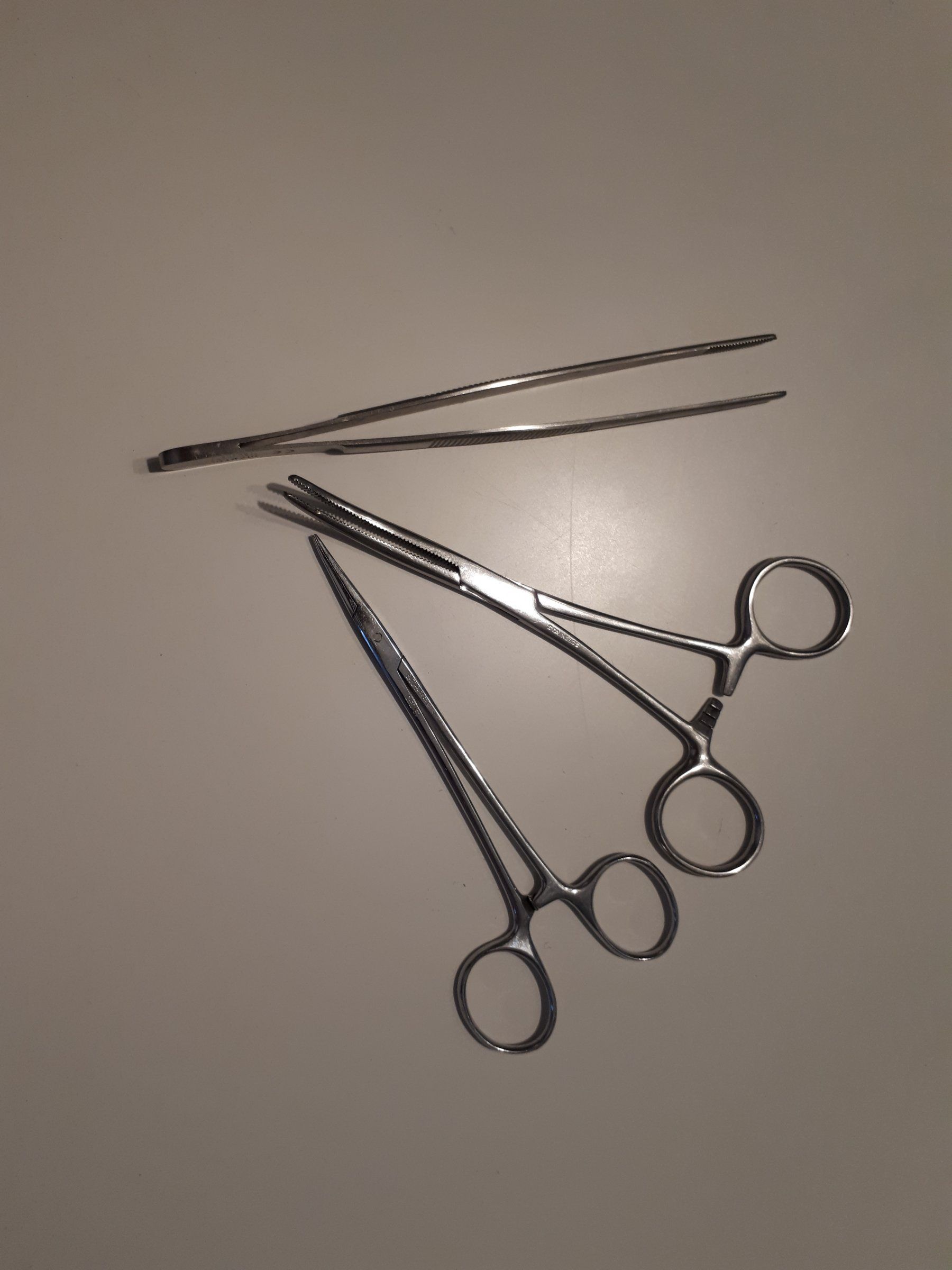 Ich wollte Euch noch meine kleinen Helferlein ziegen. Ursprünglich habe ich ausgedientes OP-Besteck für meine Elektronikbasteleien angeschafft, weil man sich damit an eng zugänglichen Stellen beim Löten nicht mehr die Finger verbrennt und Bauteile sowie Kabel geschickt in die Richtige Position manövrieren kann und trotzdem noch genug Platz für die Lötspitze übrig hat. Auch waren damit filigranere Aufbauten möglich.