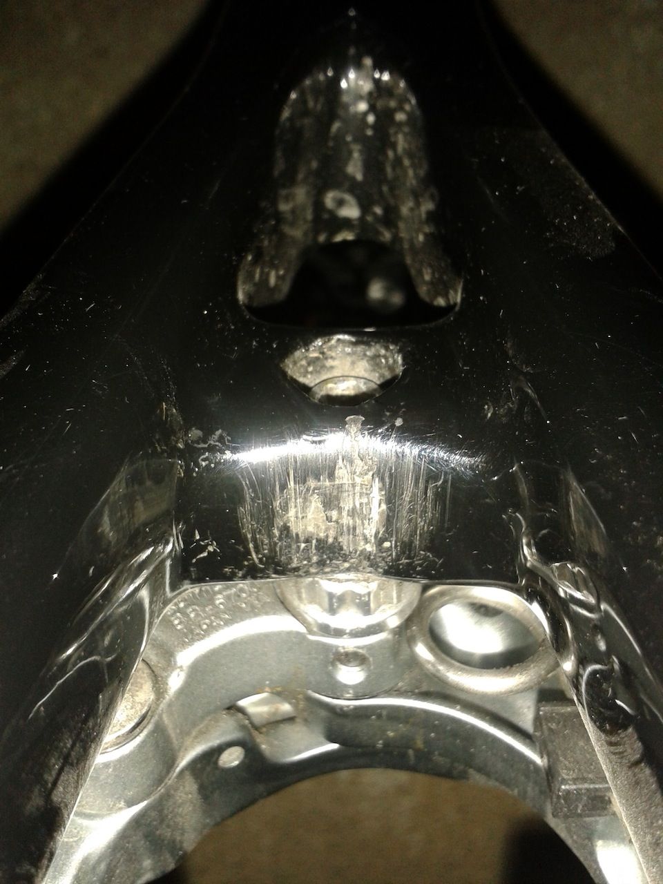 Als ich mein Hinterrad zum reinigen ausbaute bemerkte ich ziemlich tiefe Kratzer am Rahmen und bin nun ziemlich beunruhigt. Der Rahmen ist gut ein Jahr alt und hat ca. 3000km. Mein Händler meinte, ich habe einen leichten Höhenschlag im Hinterrad und es könnte deshalb zu gelegentlichem Kontakt zwischen Reifen und Rahmen kommen. Setze ich mich aufs Rad streift aber nichts und es hat etwa 1mm Spalt. Weiter meinte er, die Kratzer könnten auch von Schmutz und Wasser kommen. Ich habe mal ein paar Bilder gemacht und hoffe ihr könnt mir einmal eine neutrale Einschätzung geben.