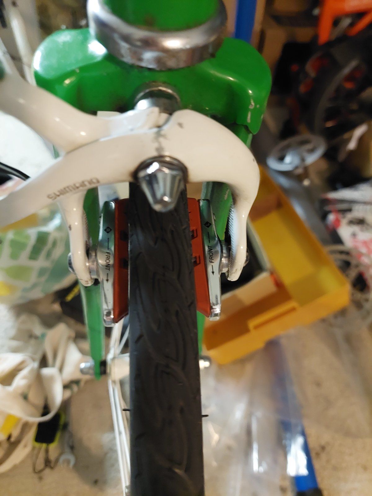 da ich auf den ersten Metern ob der sehr bescheidenen Bremsen fast schon das Ende der Rundfahrt verursacht hätte, habe ich mal ein paar neue Bremsbeläge installiert.