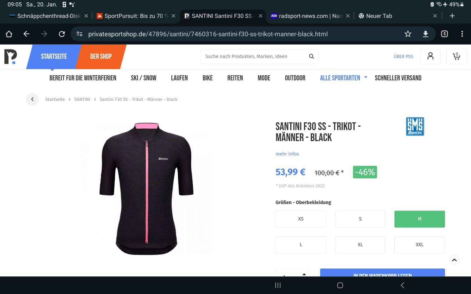Privatesportshop hat wie Sportpursuit oft Modelle aus den Vorjahren, weshalb die oft auch nirgendwo sonst mehr lieferbar sind. Oft sind sie aber auch noch auf der Seite von wie in diesem Fall Santini zu finden (gilt für die aktuellen Angebote dort von Santini genauso wie für die dortigen Sales von Rapha, Castelli etc.). Die von mir per Screenshot gezeigten sind es halt ausnahmsweise mal nicht mehr.