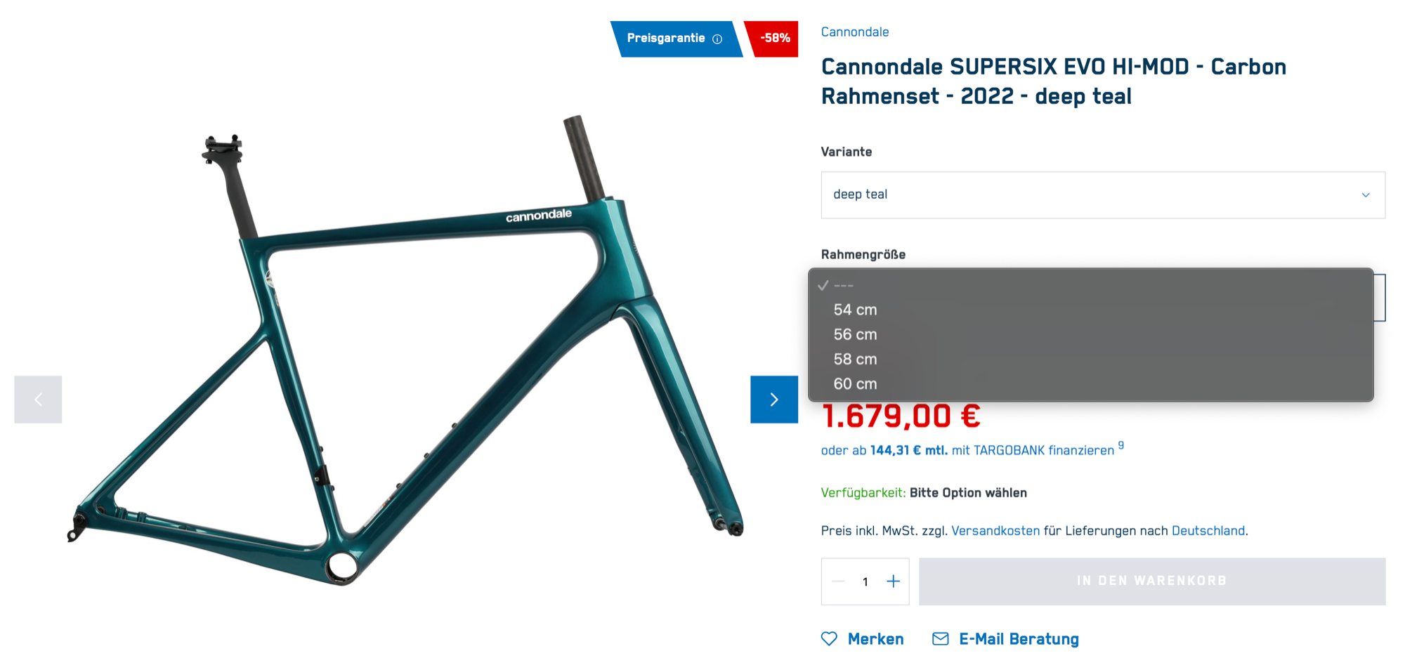 Ich habe mir das Frameset im Frühjahr gekauft, da waren es noch ein paar Hunderter mehr.
