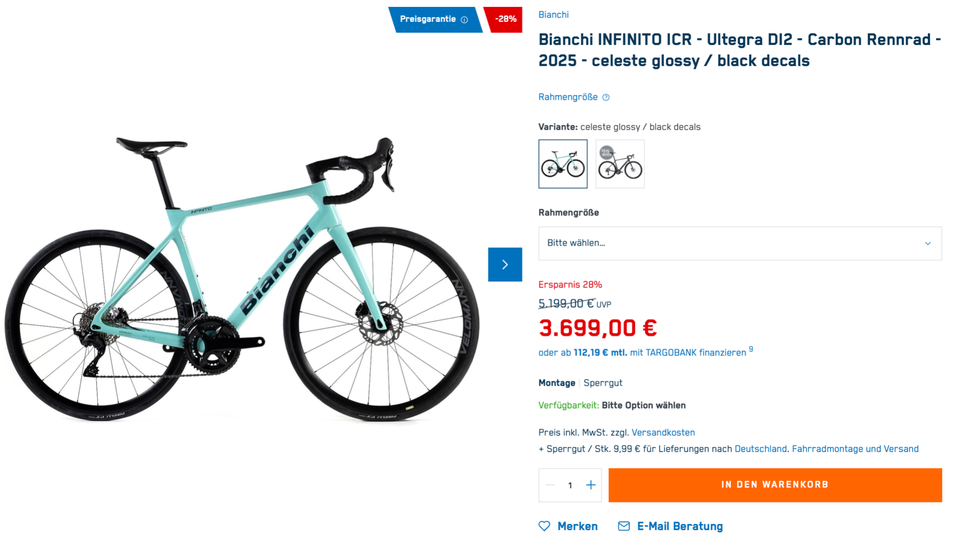 Und das nachdem das Rad hier gepostet wurde.Bianchi Infinito ICR Ultegra Di2 in Celeste und schwarz