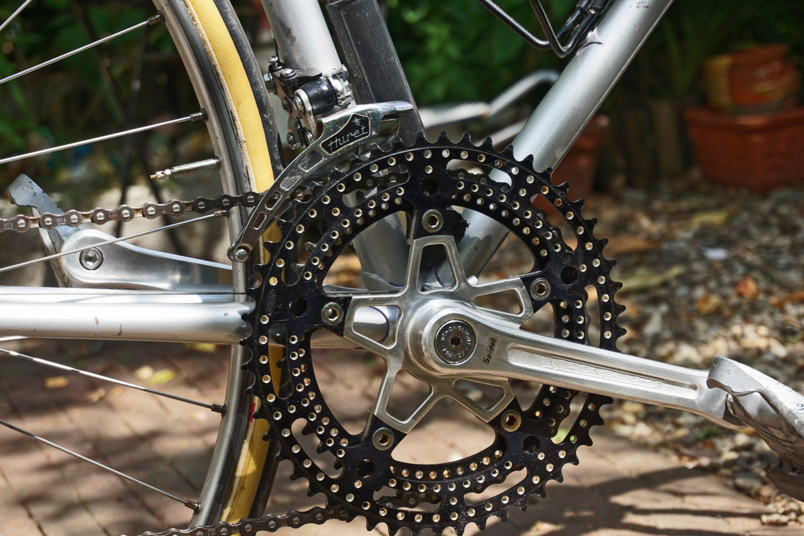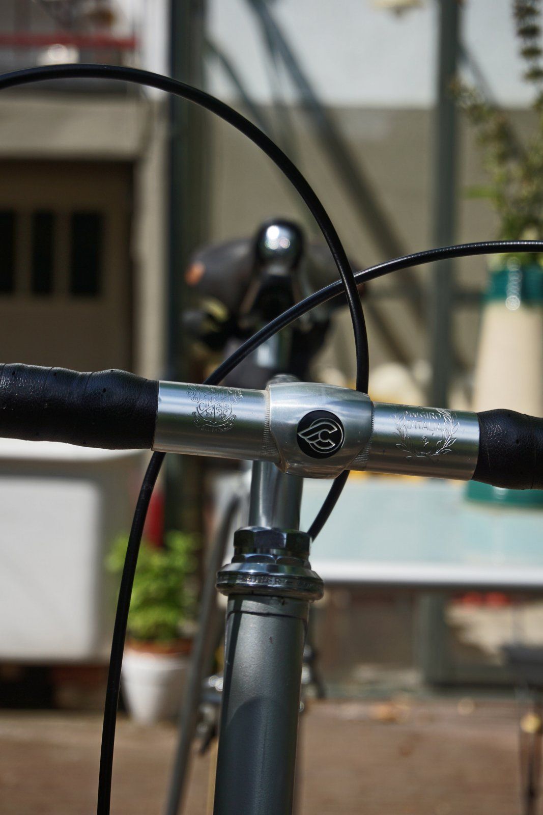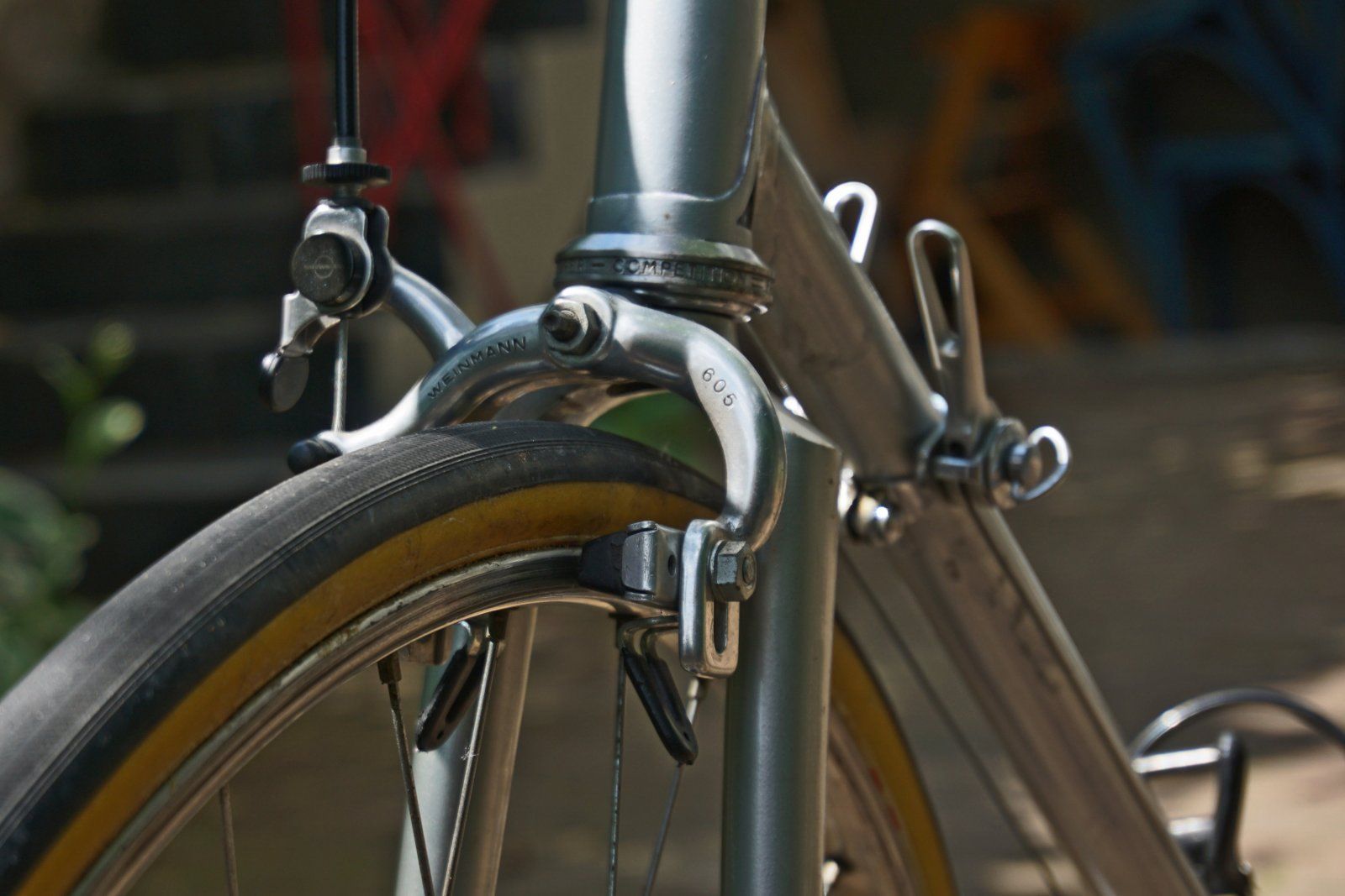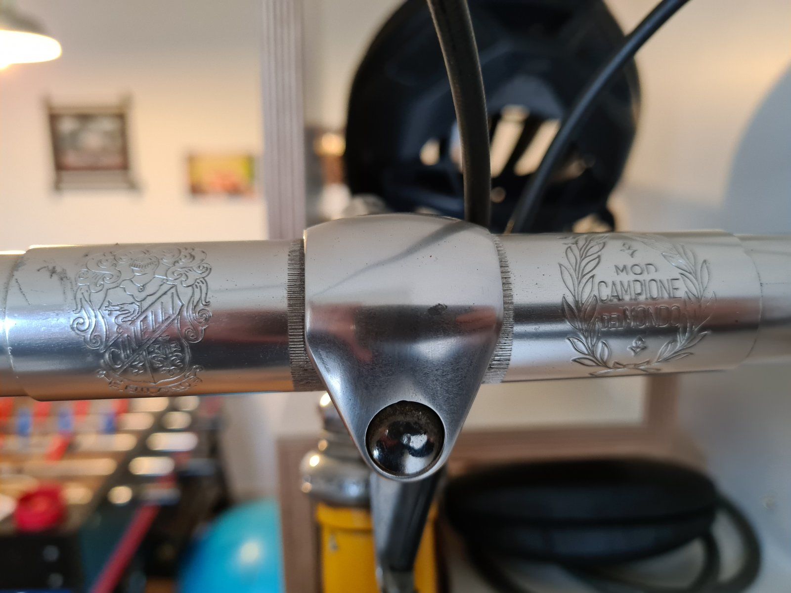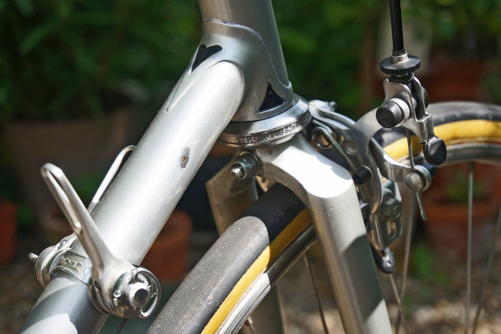 Mein ROCHET. Geschenk eines Freundes, der bei einer Entrümpelung aufgepasst hat. Vemutlich ein 1953 Modell, TdF Replica? Ursprünglich war das Rad rotmetallic mit beigen Muffen. Das beige war nicht auf die Muffen begrenzt, sondern jeweils in die Rahmenrohre übergehend. Soweit das aufgrund der Farbe beim Fund noch nachvollzogen werden konnte. Ursprünglich war (in Erinnerung an mein MOTOBECANE aus der Jugend) Auftrag an den Lacker: ein dunkleres gelbmetallic. Als der Rahmen zurück kam, war das "etwas andere gelb" in der Kiste...