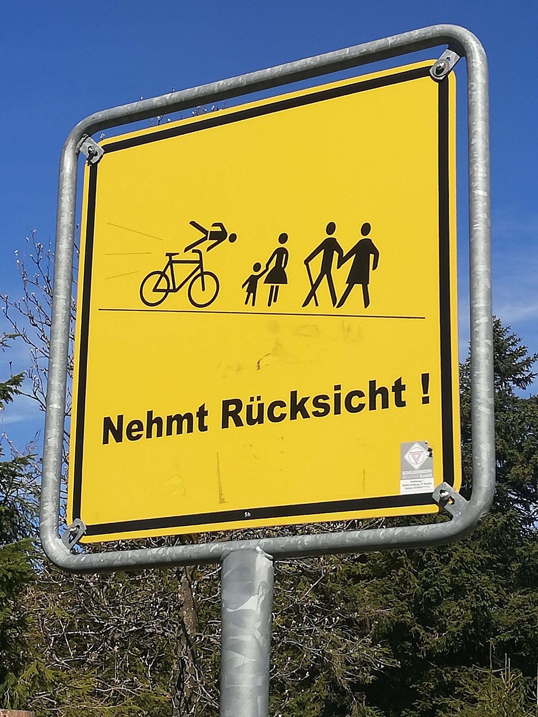 Das Schild ist absolut sinnvoll, leider wird es nicht beachtet. Den Brocken raufzufahren ist kein Problem, runterfahren ist schon schwieriger, da läuft dir so ziemlich alles vors Rad was Beine hat. Ich fahre da jedenfalls nicht mehr hoch, der Nachbarberg(Wurmberg) ist nicht minder anstrengend, dafür hat man aber dort seine Ruhe. Da gibt es auch keine Schilder.Was ist das denn für ein dämliches Schild?![]()