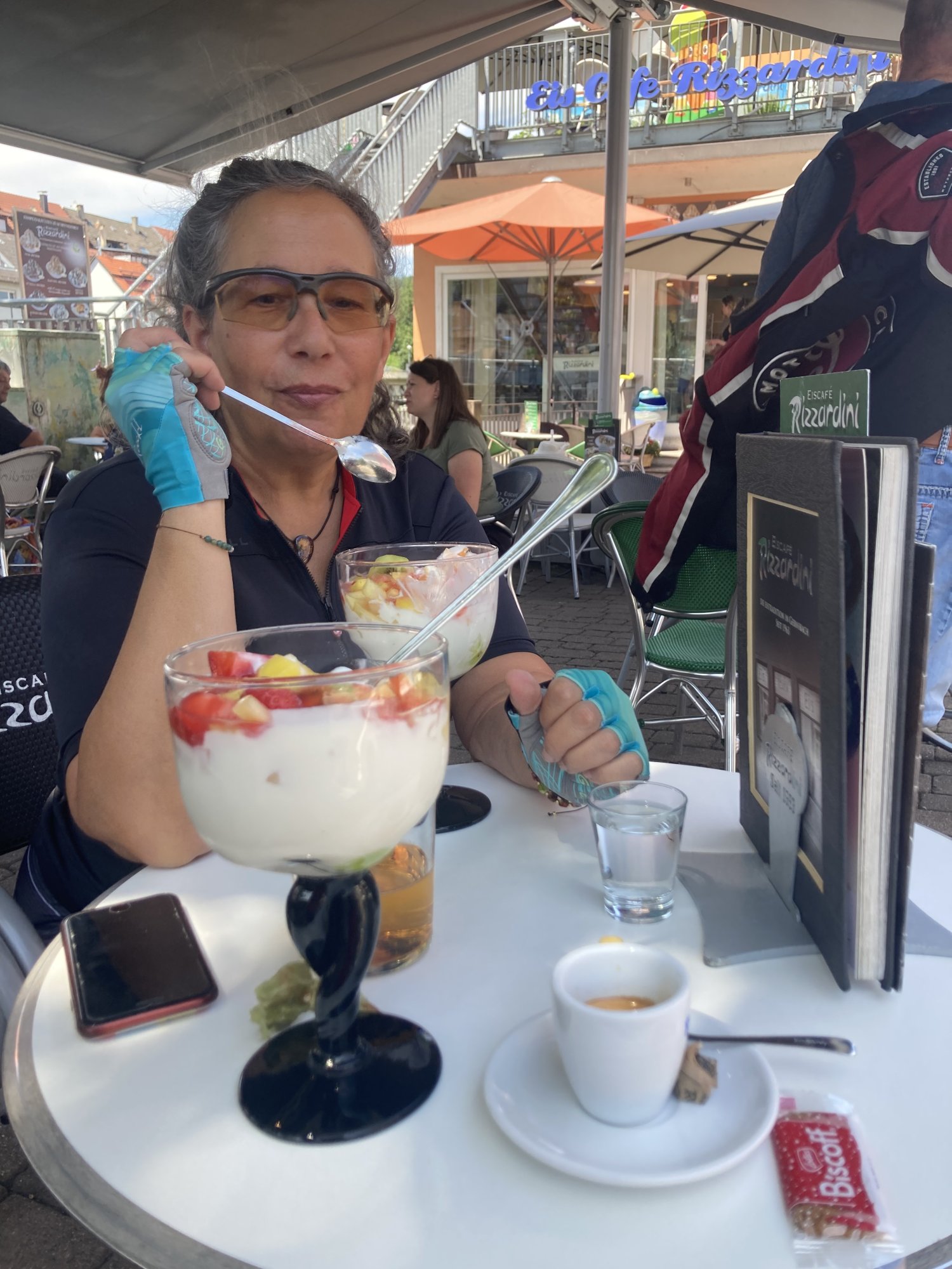 Das Wetter ist durchwachsen, aber gestern hatten wir Glück. Die Runde, Splügen-Julier-Maljola, war ordentlich mit Höhenmetern gespickt, aber die fast durchgängige Abfahrt vom Julierpass nach Chiavenna auf besten schweizer Straßen war ein Traum!!!! Der Verkehr dagegen eine Katastrophe, hat eigentlich jeder Schweizer einen PS überzüchteten Porsche?!