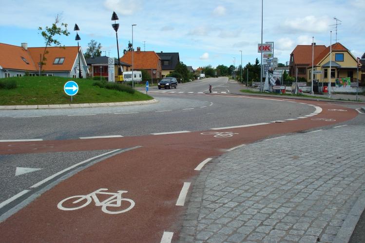 Noch einmal zu dem Dänischen Kreisverkehr. In Deutschland kenne ich nur Kreisverkehr mit außen liegendem Radweg, in Dänemark habe ich sie mit innen liegendem Radweg gesehen (wie auf dem Bild) was ich für die Radfahrer viel besser finde.