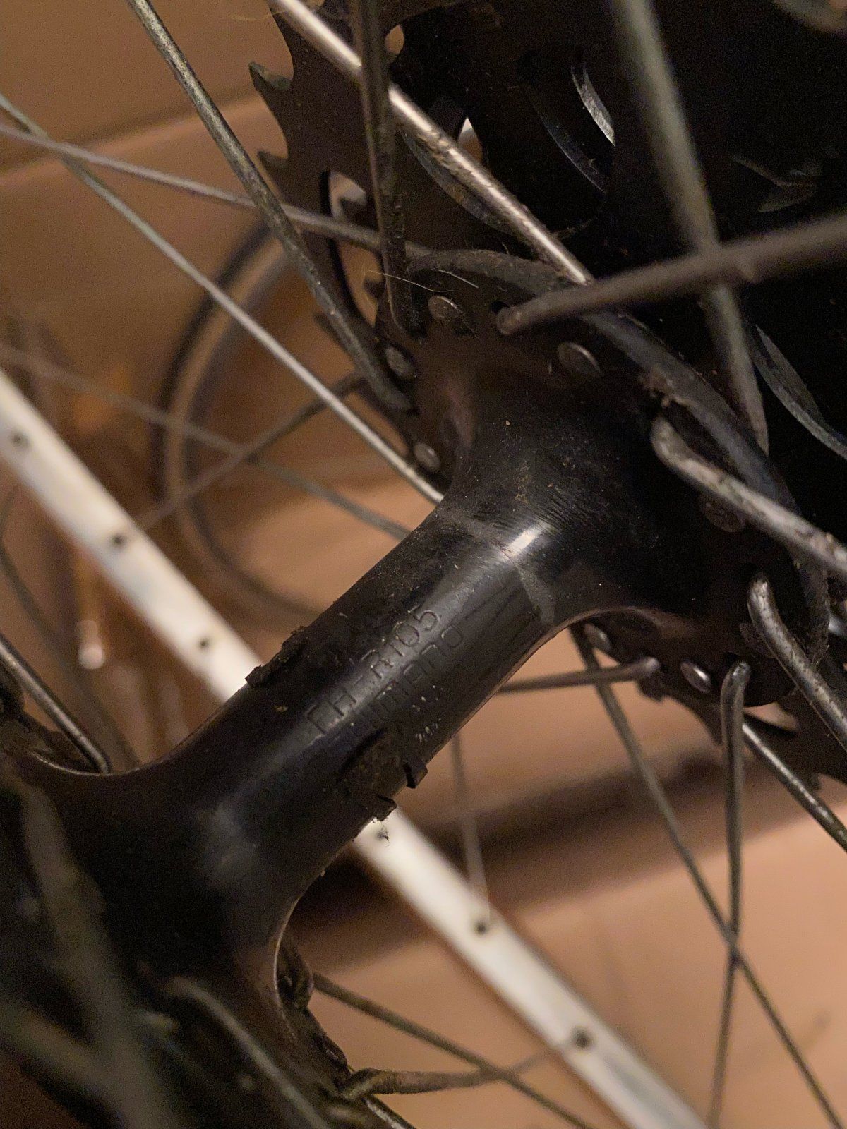 Teile jedweder Art flogen (wenn sie Glück hatten in die Kiste, sonst in die Tonne) und besseres Zeug (rein subjektiv) kam dran. Was sicherlich auch daran lag, dass der Gruppen-Gedanke der uns heute manchmal so beherrscht (das ganze sortenreine Zeug) einfach noch nicht da war. Weinmann Bremsen, Hatta-Steuersatz, 600er Kurbel, Simplex Schaltung, Cinelli, Cockpit, Campa LRS - ging, heute ein Sakrileg.