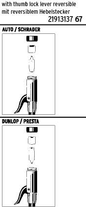 Für Sclaverand-Ventile den Hebel vorher auf 45° umlegen, aufs Ventil aufsetzen und dann den Hebel auf 90° umlegen.