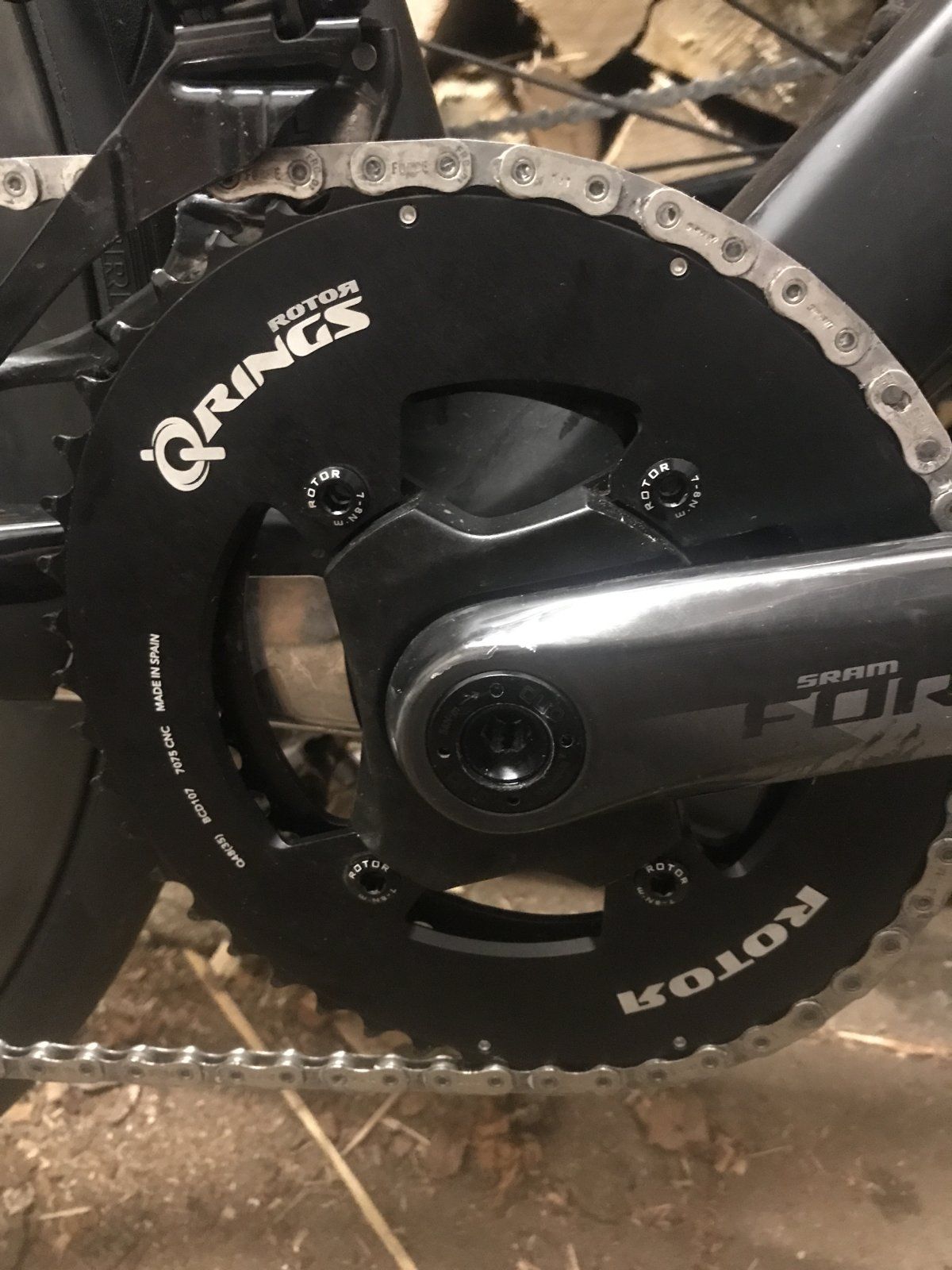 Sram Force macht genau was sie soll und das ohne Schleifen oder sonstige ungewöhnlich laute Geräuschkulisse. Und jetzt ist immer noch rund 0.5 bis 1mm Abstand zwischen Umwerfer und Kurbel. Also noch genug Platz zur Feinabstimmung.