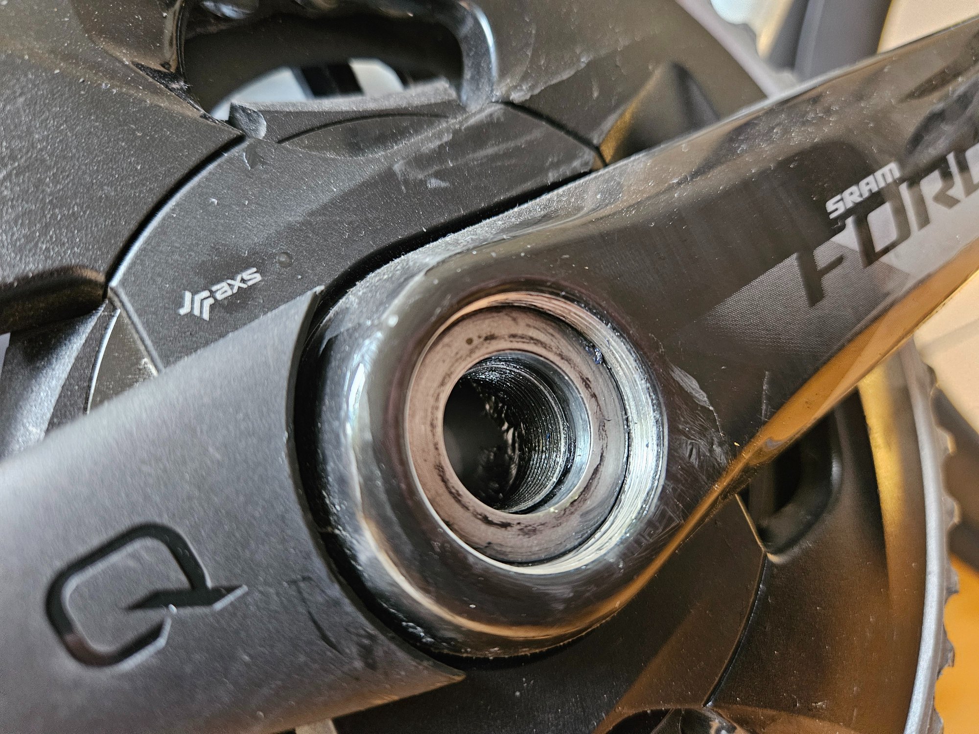 ich habe leider ein kleines oder mittelschweres Problem mit meiner SRAM Force Kurbelgarnitur (aus 2022, also nicht die ganz neue Version) an meinem Cube Litening 2022. Da ich ein Knarzen irgendwo da unten bei Treten habe und gleichzeitig die abgefahrenen Kettenblätter wechseln wollte, wollte die die Kurbelgarnitur einmal abschrauben, Kettenblätter tauschen und neu fetten. So weit erstmal nichts sonderlich Herausforderndes.