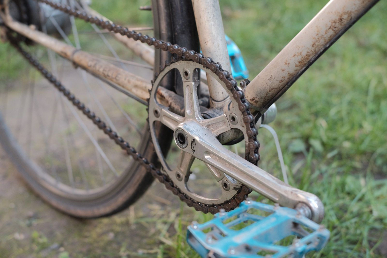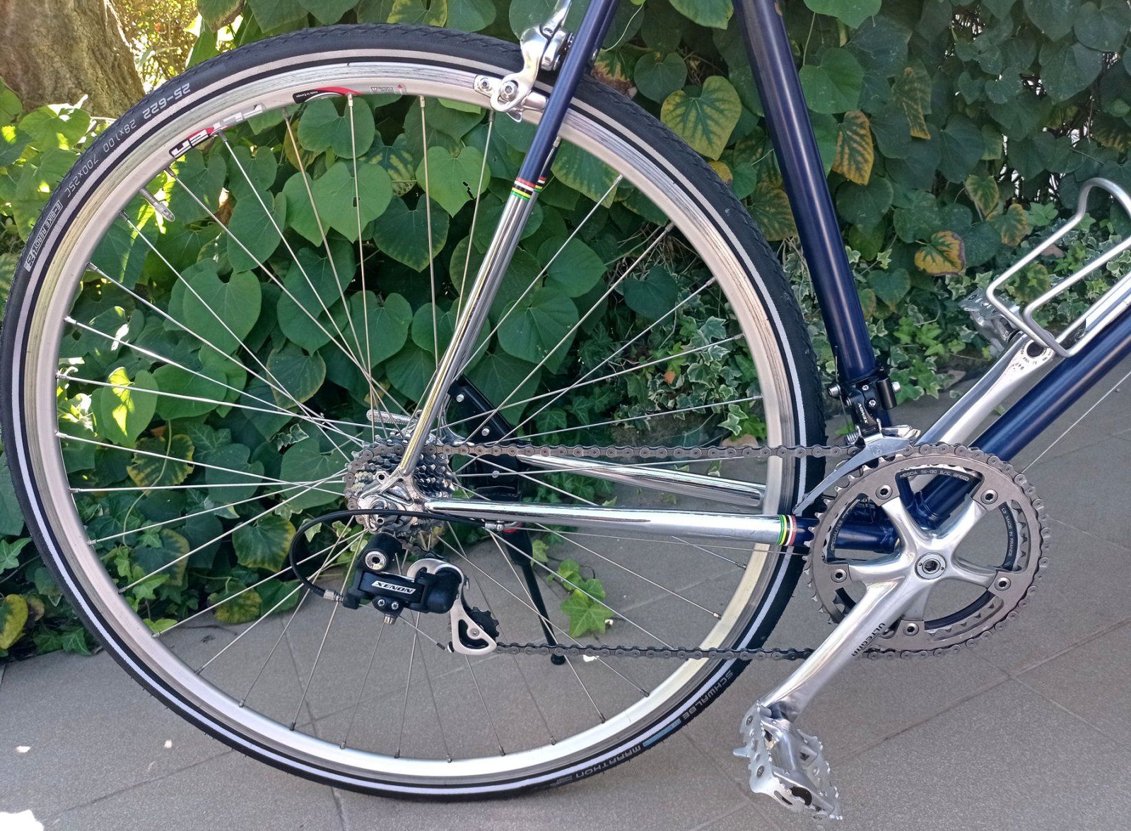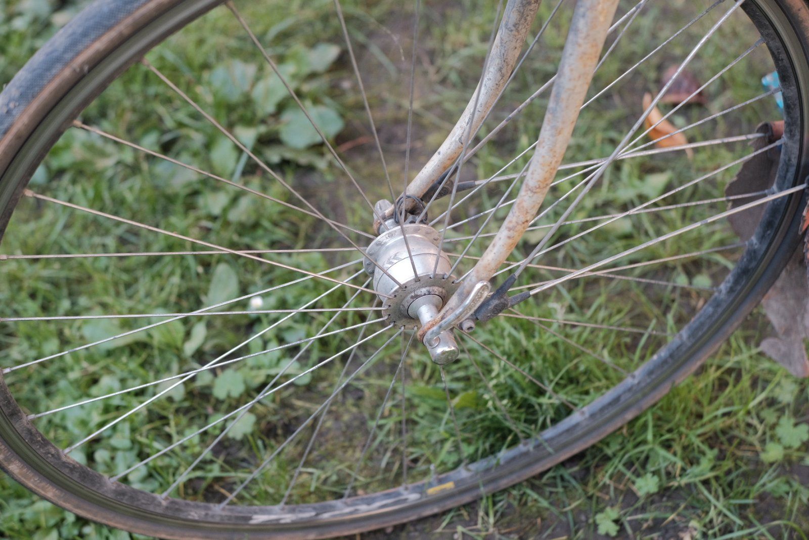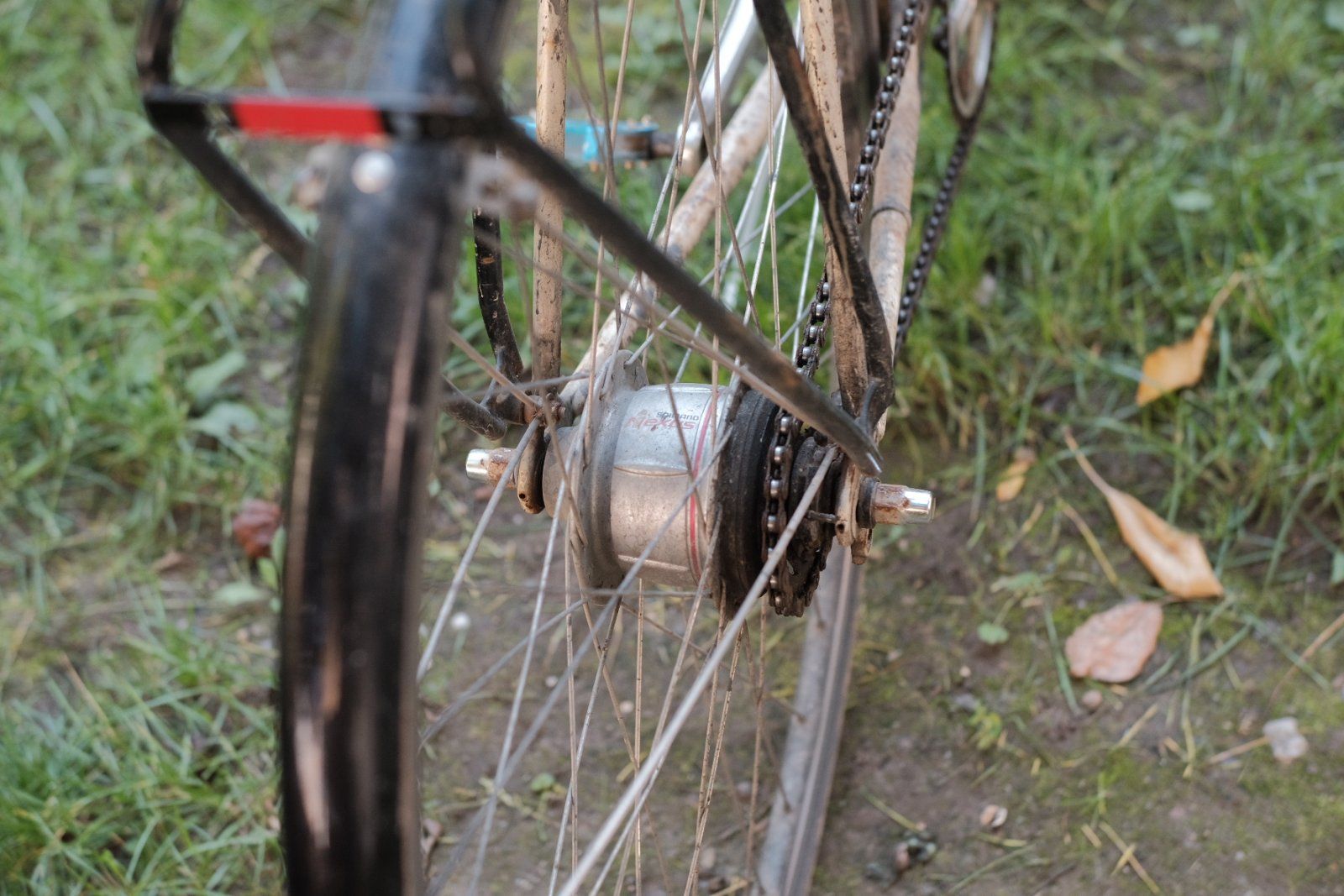 Nach 9 Jahren geht mein geliebtes Arbeitsrad nun in den Ruhestand. Zum Abschied hab ich noch ein paar Bilder ungeputzt in voller Pracht gemacht. Den Rahmen kaufte ich damals wegen der schönen Patina, die sich auch nicht wirklich verschlechtert hat. Gestartet bin ich mal ohne Licht und mit 52-19. Nach einer leichten Kollision (glaube 2015) kam der Nady mit Licht. 2019, nach Problemen mit der Lunge, dann 42-23. Die Kette hab ich nie getauscht, deswegen hab ich auch nicht wieder auf eine größere Übersetzung gewechselt. War eine sehr solide BMX-Kette von KMC. Ein Mal im Jahr habe ich die abgenommen, gereinigt und neu geschmiert. Leider war die mäßige Reifenfreiheit der Grund, weshalb ich es jetzt ersetzen werde. Hatte auch über 650b nachgedacht, aber der neue Rahmen erfüllt einfach besser die Anforderungen und lässt sich auch flexibler bestücken. Die Nexus (Premium) hat NIE Zuwendung bekommen und lief bis zum Schluss, wenn auch völlig rauh und nicht mehr spielfrei. Gänge gingen aber alle noch, lediglich einer rutschte gelegentlich durch, weiß jedoch gerade nicht welcher.