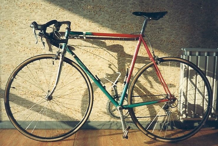 gibts glaube ich nicht mehr. Es war ein Colnago aus SL mit runden Rohren, dass in Cesenatico eine Begegnung mit einem linksabgiegenden Fiat hatte, das war in den frühen 90ern. Da bis auf einen kleinen Knick zwischen den Schaltsockeln und einer wirklich leichten Biegung des ORs alles i.O. war, bat ich Willy, das zu richten, da er mir von meinem Trainer empfohlen wurde. Er lötete damals irgendwas mit dem gleichen Außendurchmesser ein, der Rahmen wog danach ca. 500 Gramm mehr, das Unterrohr war auch miminal zu kurz, wodurch der Radstand etwas kürzer wurde und der Lenkerwinkel recht steil. Dazu entfernte er die komplette Farbe inkl. Chrom und ersetzte sie durch eine saumäßig schlecht gemachte silbergraue. Die haftete so schlecht, dass selbst Isoband sie hochhob, von Rost ganz zu schweigen. Der Rahmen fristete daher ein Dasein als Winterrad, bis ein erneuter Frontalchrash (kommste umme Kurve, kommt dir ein Auto entgegen. Nein, noch nicht mal ein Engländer, nicht besoffen und völlig schuldunbewußt) ihn vor ein paar Jahren endgültig ins Nirwana beförderte. Mit meinem Wissen von heute hätte ich den Rahmen als top in Ordnung und Colnago Master Mexico vintage rare fixie singlespeed für 999 € in