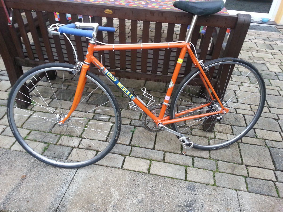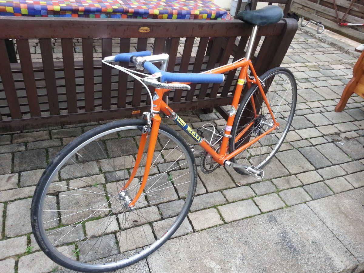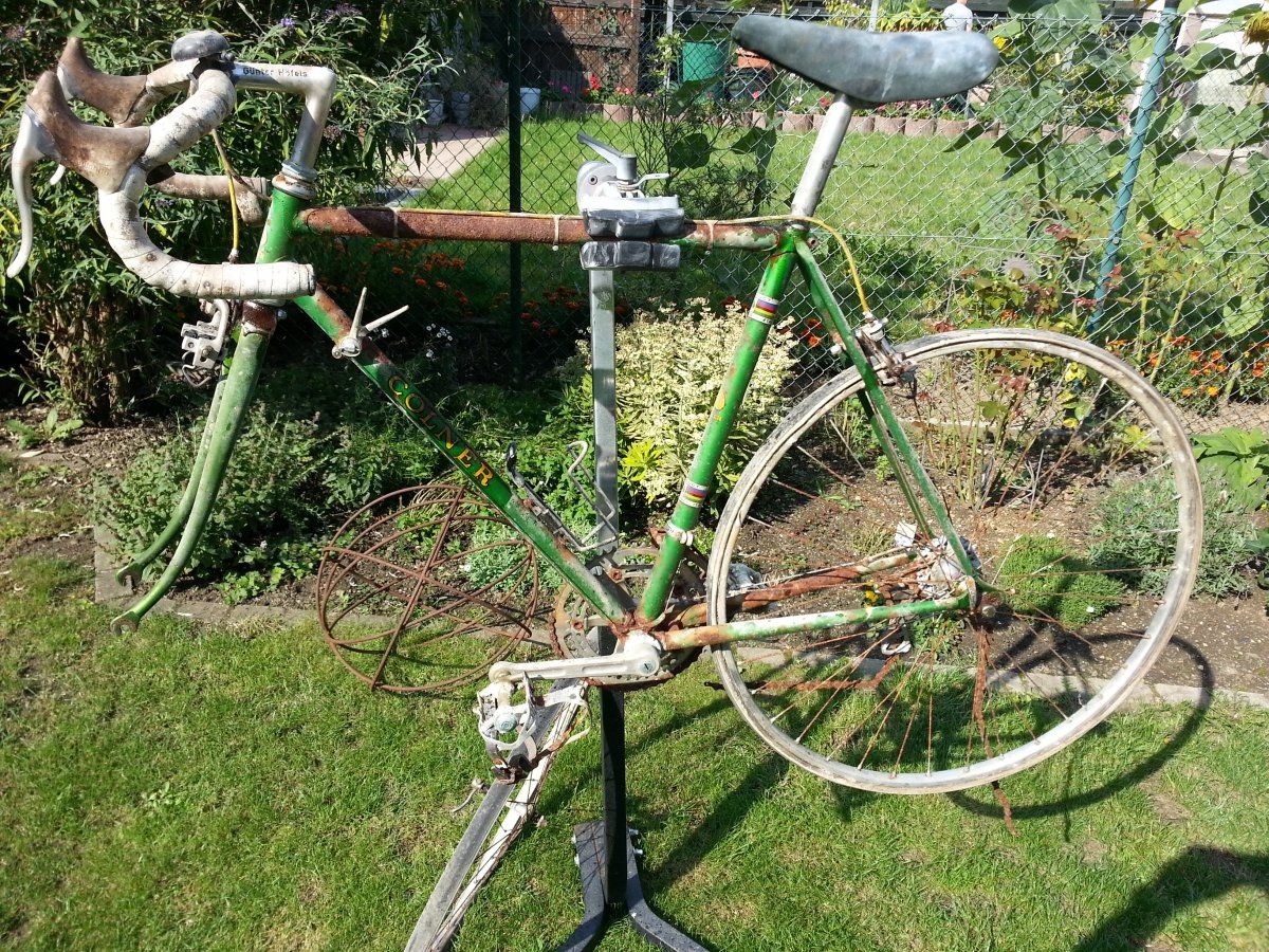 hatte ihn komplett entlackt und die Rostkrater gespachtelt.Draus geworden ist ein Eddy Merckx Molteni team modell