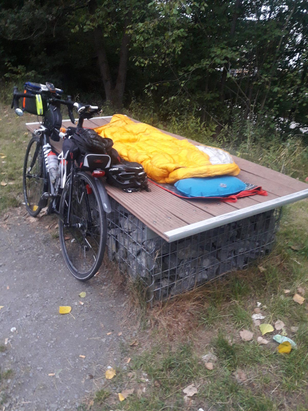 Das dürfte ich gewesen sein. Bin die SR von Haiger aus am Samstag Abend angegangen und die breiten Bänke/Tafeln am Bahnradweg haben sich um 4Uhr morgens einfach perfekt angeboten (bis kurz vor 8Uhr war es ja trocken)