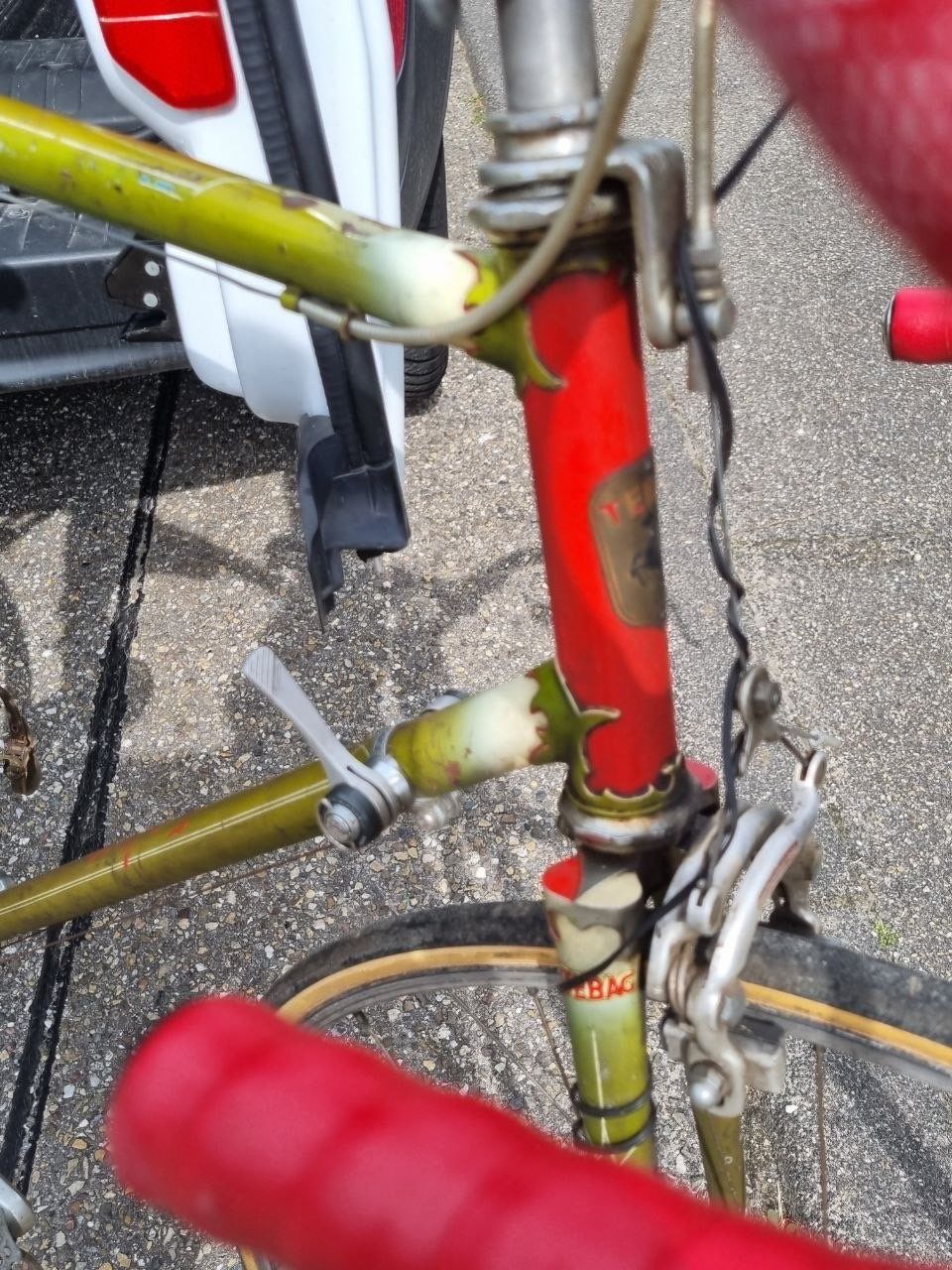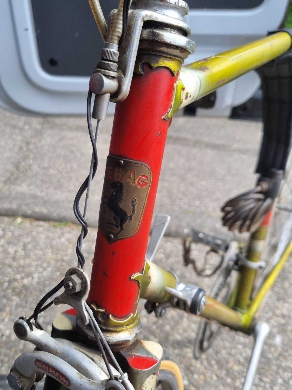 Das gezeigte Museums-TEBAG sehe ich aber nicht als Kübler's WM Maschine von 1951 in Varese, die sah doch deutlich anders aus mit heller Gabel, anderer Schaltung und anderem Steuerkopfschild, siehe das Varese-Zielfoto unten.