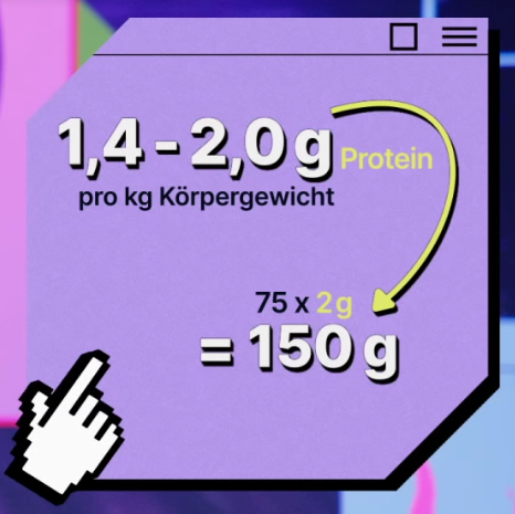 - Protein 0,83g pro Kg/Körpergewicht ist der von der WHO empfohlene Wert, wer trainiert kann auf 1,4 - 2g gehen. Das wären aber ca. 480g Hähnchen oder 750g Tofu oder 21 Eier bei 75kg. Daher kann es sinn machen, Protein zu supplementieren