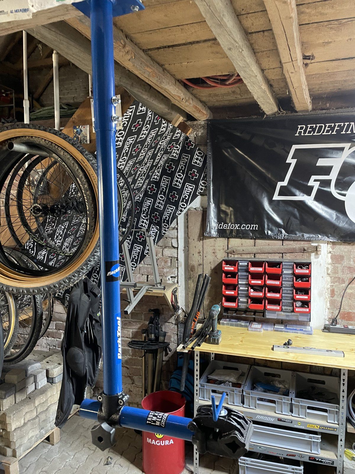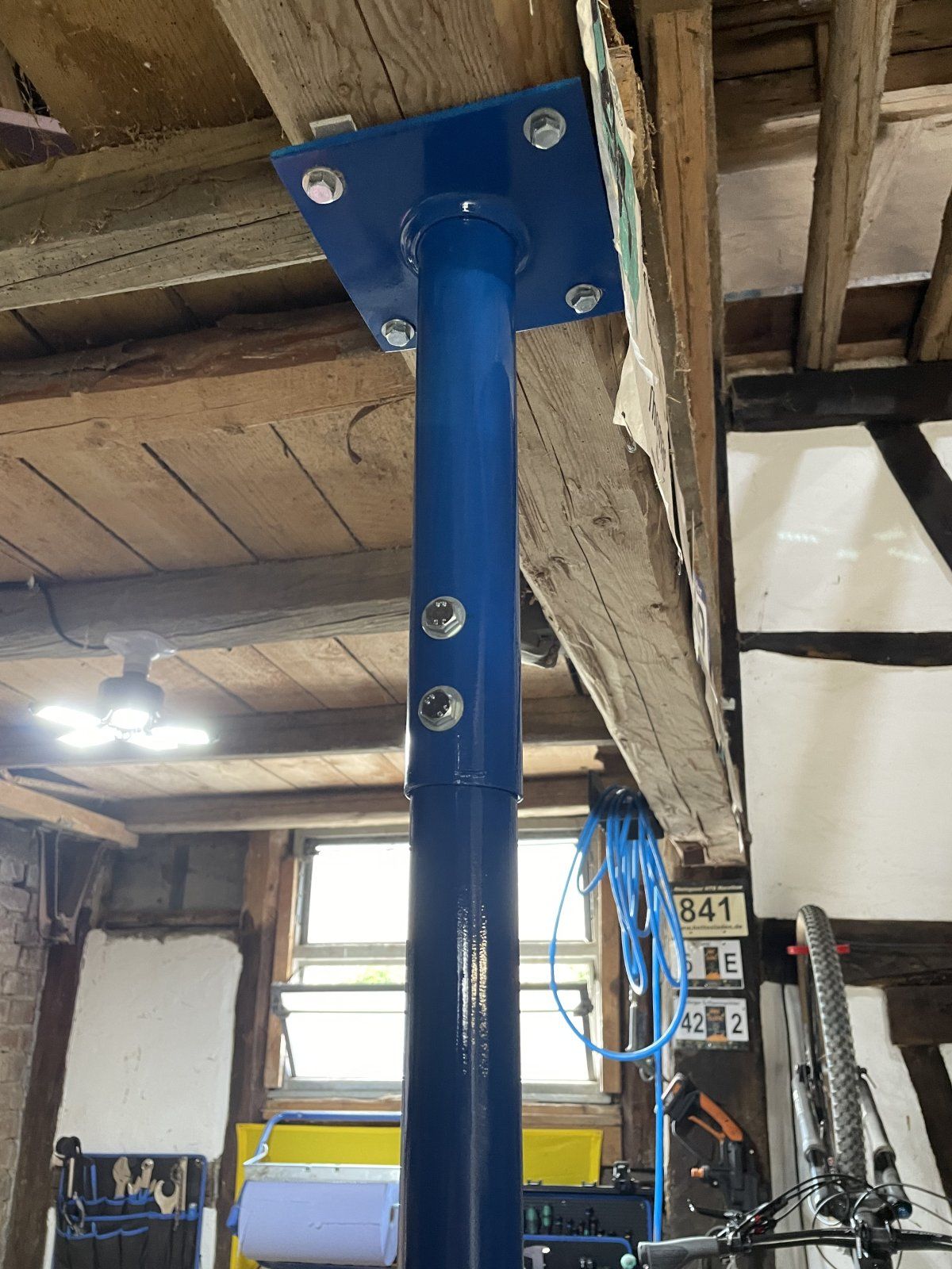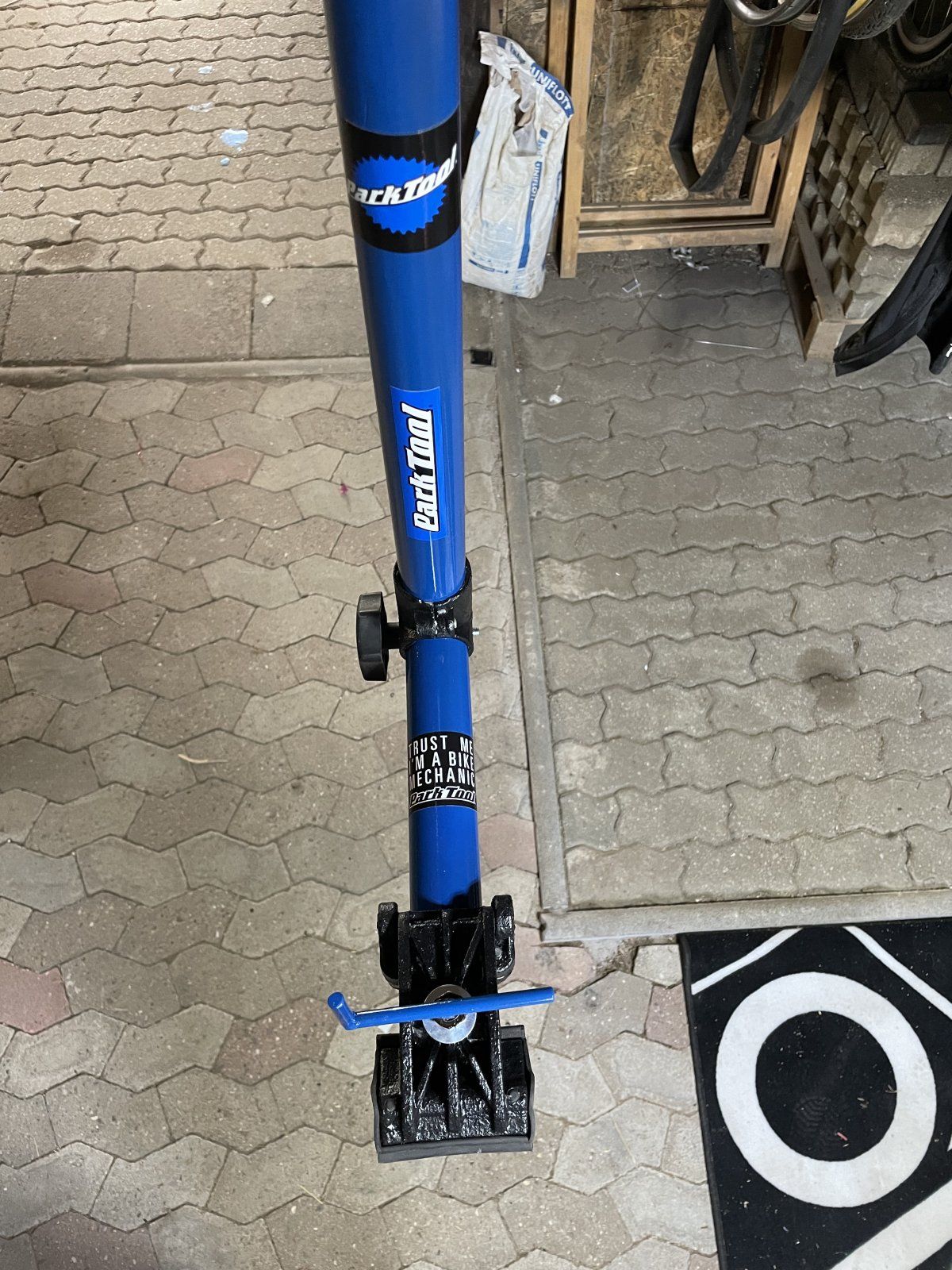 Ernsthaft: Sowas ähnliches habe ich aktuell auch im Hinterkopf, allerdings mit dem Montagearm von Bluechain, da mir das P/L für eine Parktool Montageständer iwi nicht gerechtfertigt erscheint.