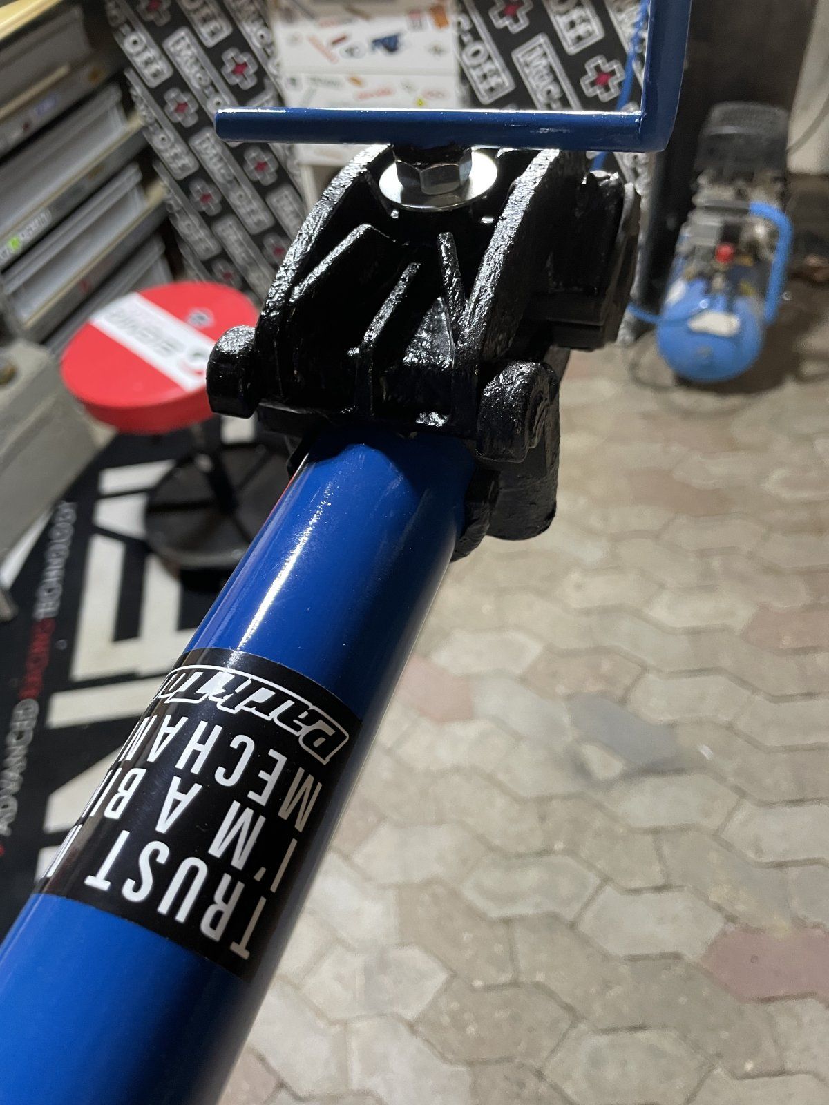 Hallo, hier mal mein Custom Montageständer, ich war mit den fertigen Park Tool einfach nicht so zufrieden.