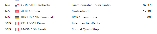 Jetzt als 166er mit der Zeit der ersten Gruppe.Buchmann als DNF gelistet.