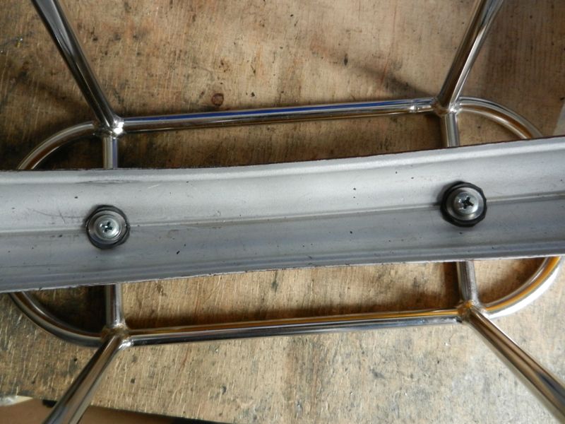 Die unteren Streben sind leider etwas zu kurz, so dass die Linie ums Rad an der Stelle leider nicht ganz gleichförmig ist. Wenn jemand längere Streben hat (das sind die alten einzelnen), nehme ich sie gerne.