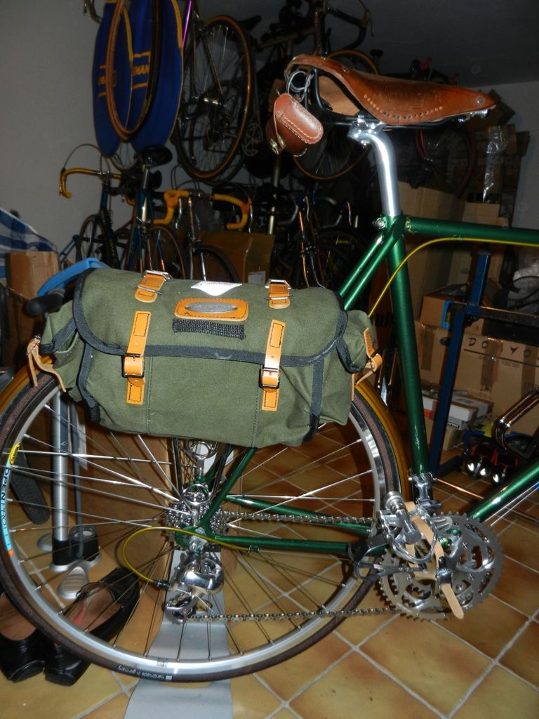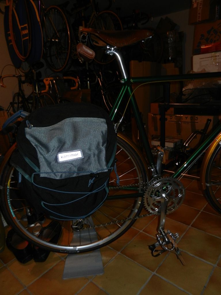 Sieht gut aus, aber sdie Köcherform sehe ich schon mit dem Fuß kollidieren. Oder kann man die so einhängen, dass die Tasche weit hinten sitzt?Ich finde braune Ortlieb Taschen würden dem Rad gut stehen.
