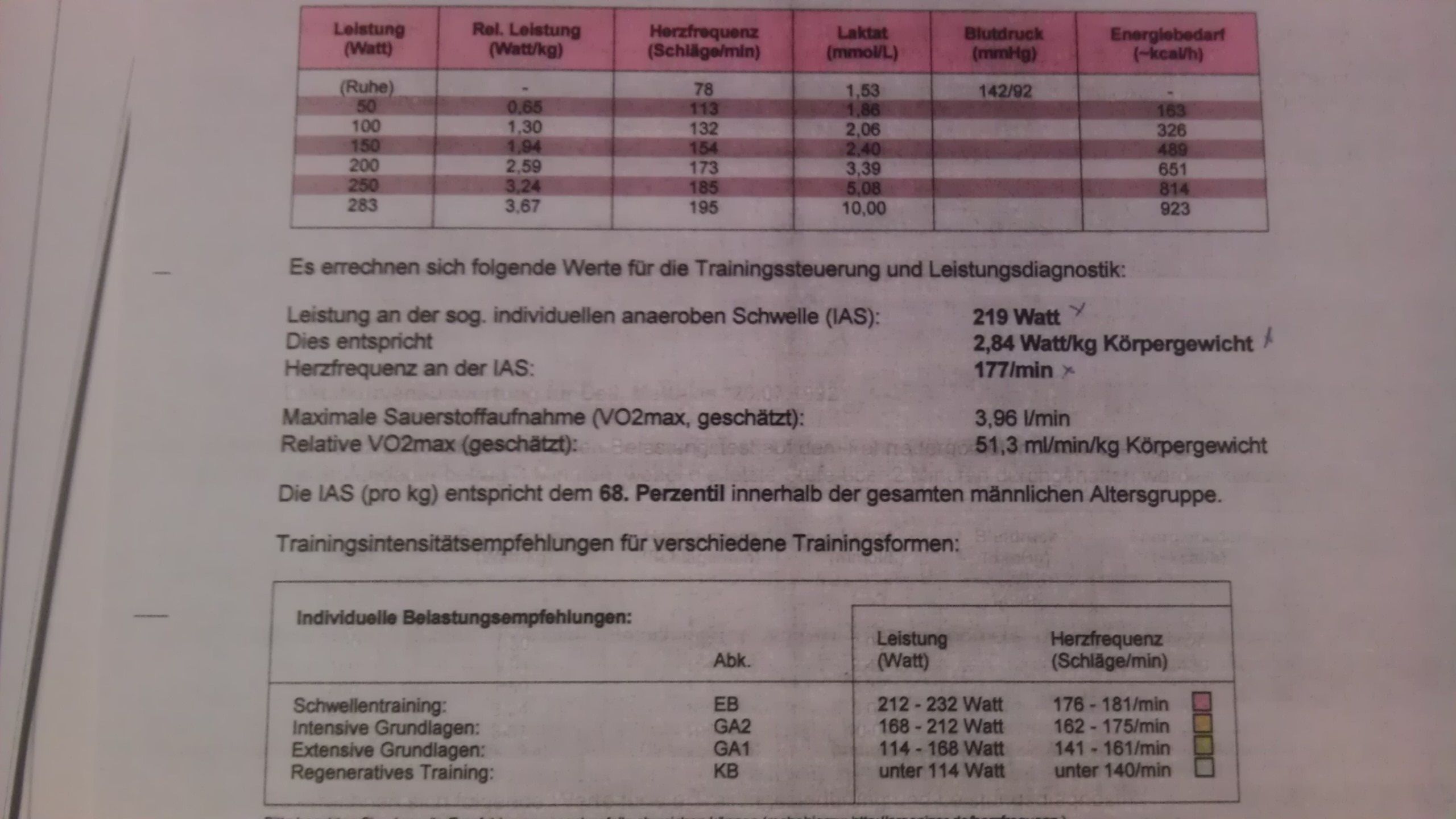 ich war neulich bei der Leistungsdiagnostik, um mal wieder eine grobe Idee zu bekommen, wo ich mich leistungstechnisch befinde.