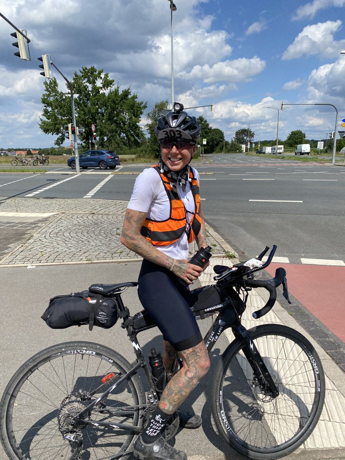 Sarah #303 ist quasi an meiner Haustür vorbeigefahren - kurz vor Nürnberg. Sehr sympathisch, sehr fit und ziemlich schnell … Wünsche ihr viel Spaß und Glück