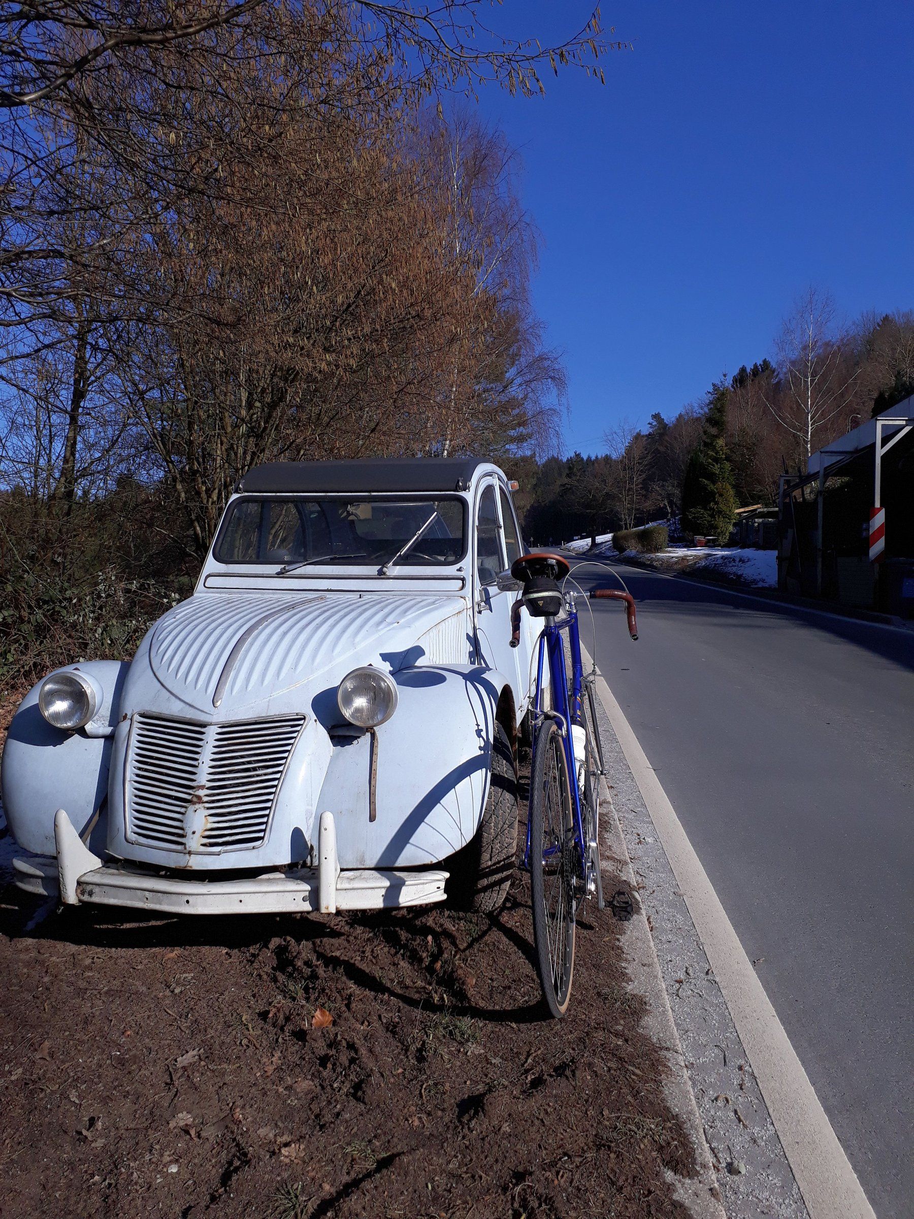 Jetzt wurde es ziemlich ländlich. Strahlend blauer Himmel bei ca. 4 -5 Grad plus. Fast schon ein Hauch von Frühling.