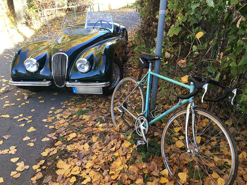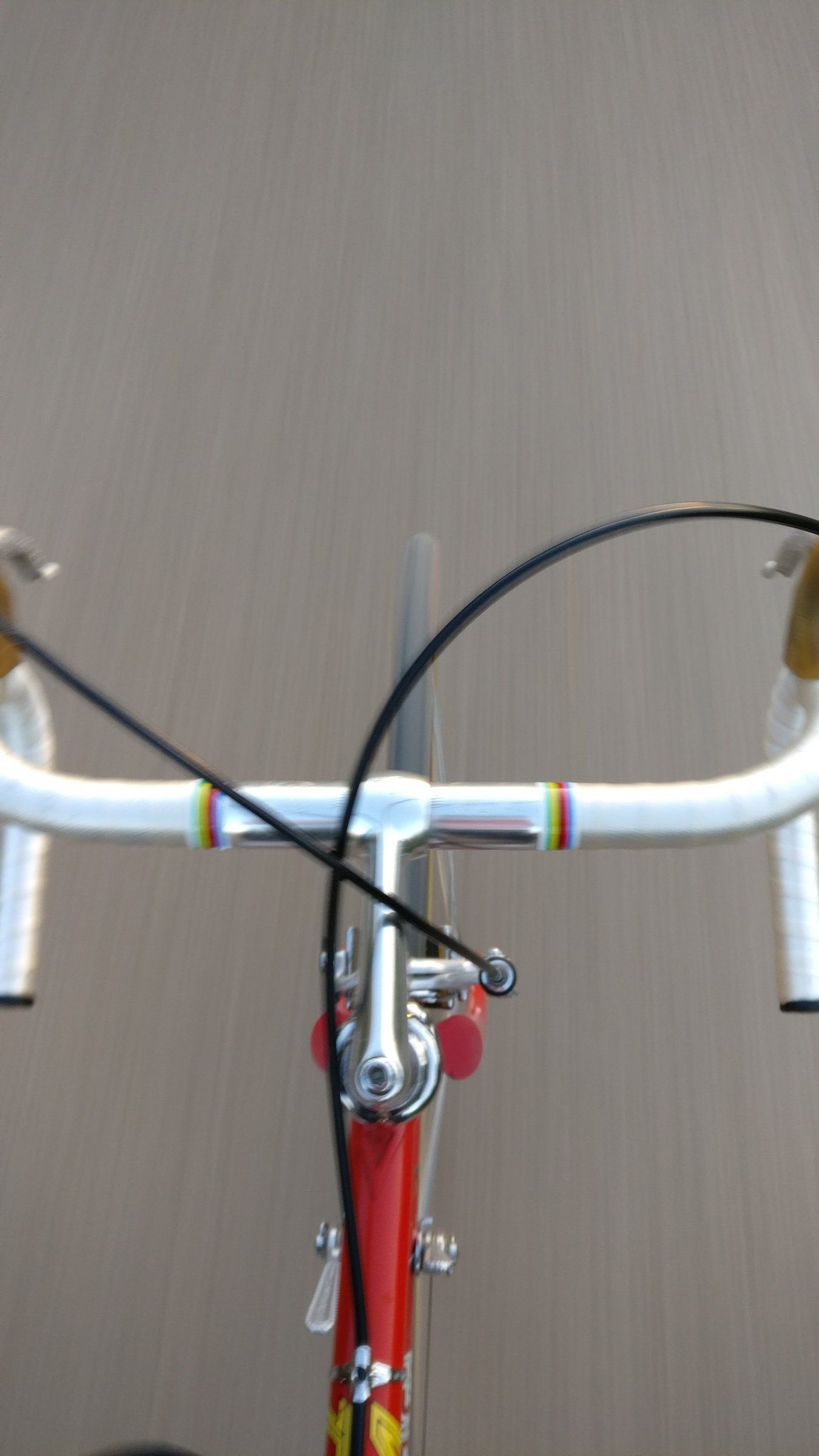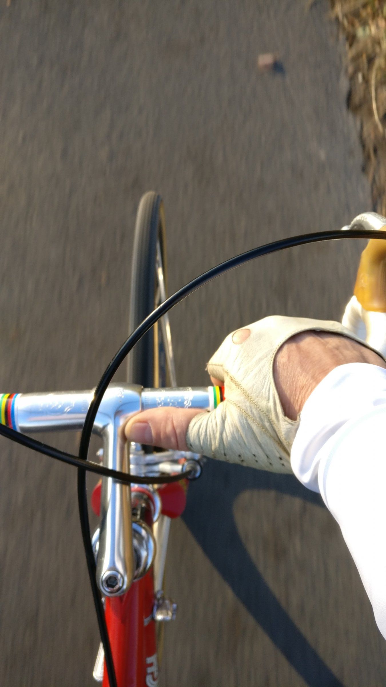 Das Rad hatte ursprünglich einen hellen Sattel (mit Bianchi Schriftzug) und Lenkerband in Rahmenfarbe.