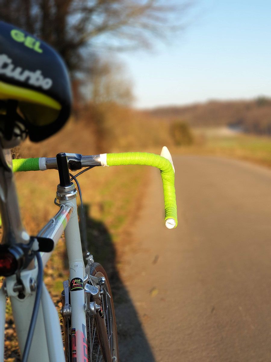 Wer noch genauer hinschaut, der erkennt, dass auch die Gravur der Campagnolo-Hebel in eine Richtung zeigt. Zum Glück ist das bei der symmetrisch gravierten Jubiläumsgruppe noch anders.Eigentlich ist das zweite Bild echt gut. Nur leider erkennt man, dass du das rechte Lenkerband andersrum als das linke gewickelt hast (oder gleichrum? Jedenfalls falsch). Das ist schade, denn eigentlich passt das.