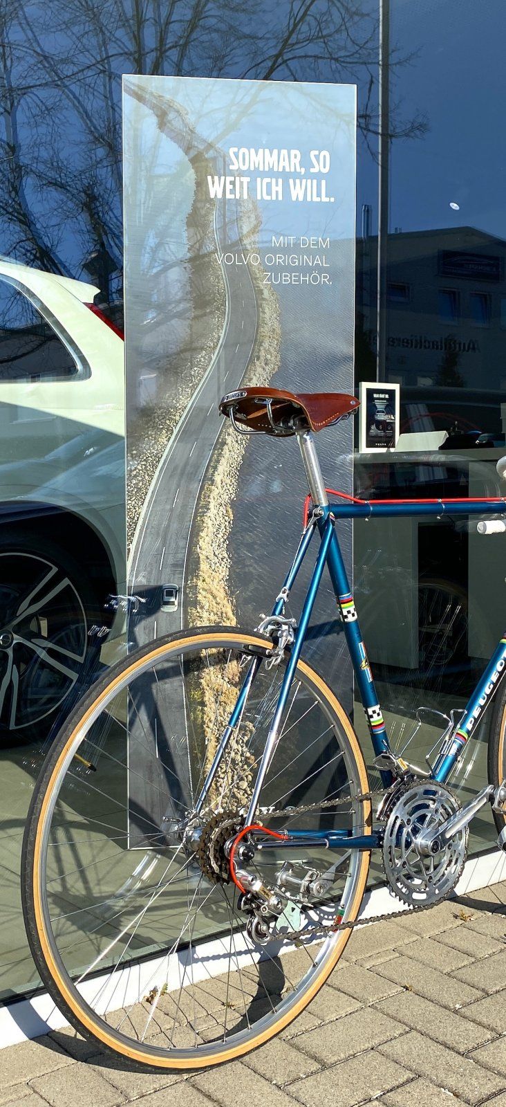 Wenn die da mal so alt sind, wie die zwei Senioren oben, dann ist eins klar: fahren tun die nicht mehr ...Boah, stehen dem Rad die roten Züge gut!Am selben Ort, bei identischem Wetter, aber heute in bleu ...