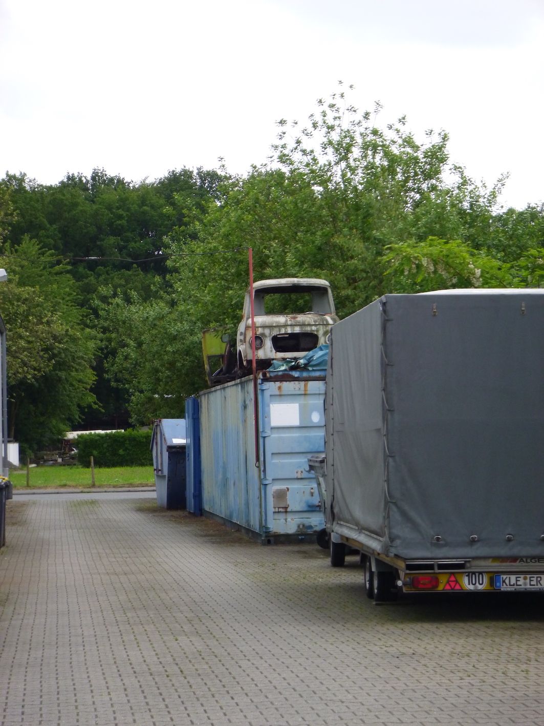 Da heben wir oben einen traurigen Anblick und unten ein Framo, mit niederländischem Nummernschild... Sind die blauen Schilder mit weißer Schrift in einer bestimmten Zeit ausgegeben worden, weißt Du das zufällig? Vielleicht sind die Framos damals ja sogar nach NL exportiert worden...? Oder er gehört einem Oldtimerfreund, der ihn sich in der DDR besorgt hat.Was haben wir denn da?