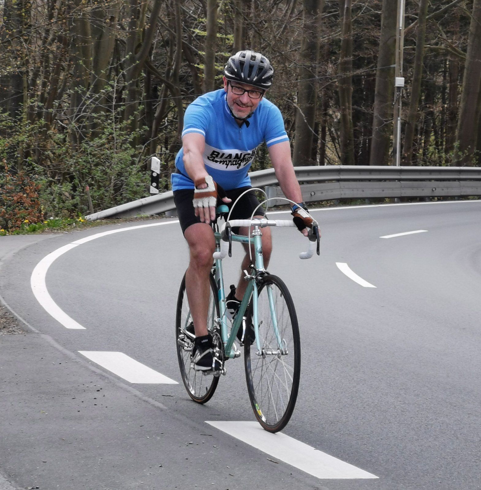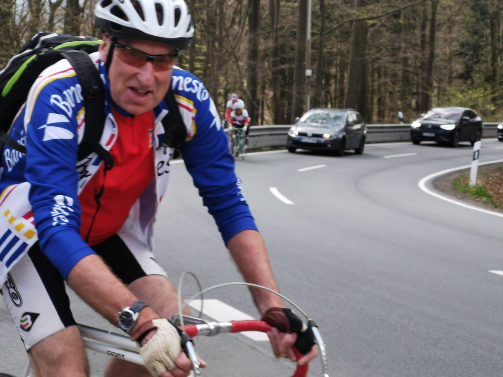 Gestärkt gings an die Bergwertung Peter auf dem Berge. Der Zucker musste ja aus dem Blut.